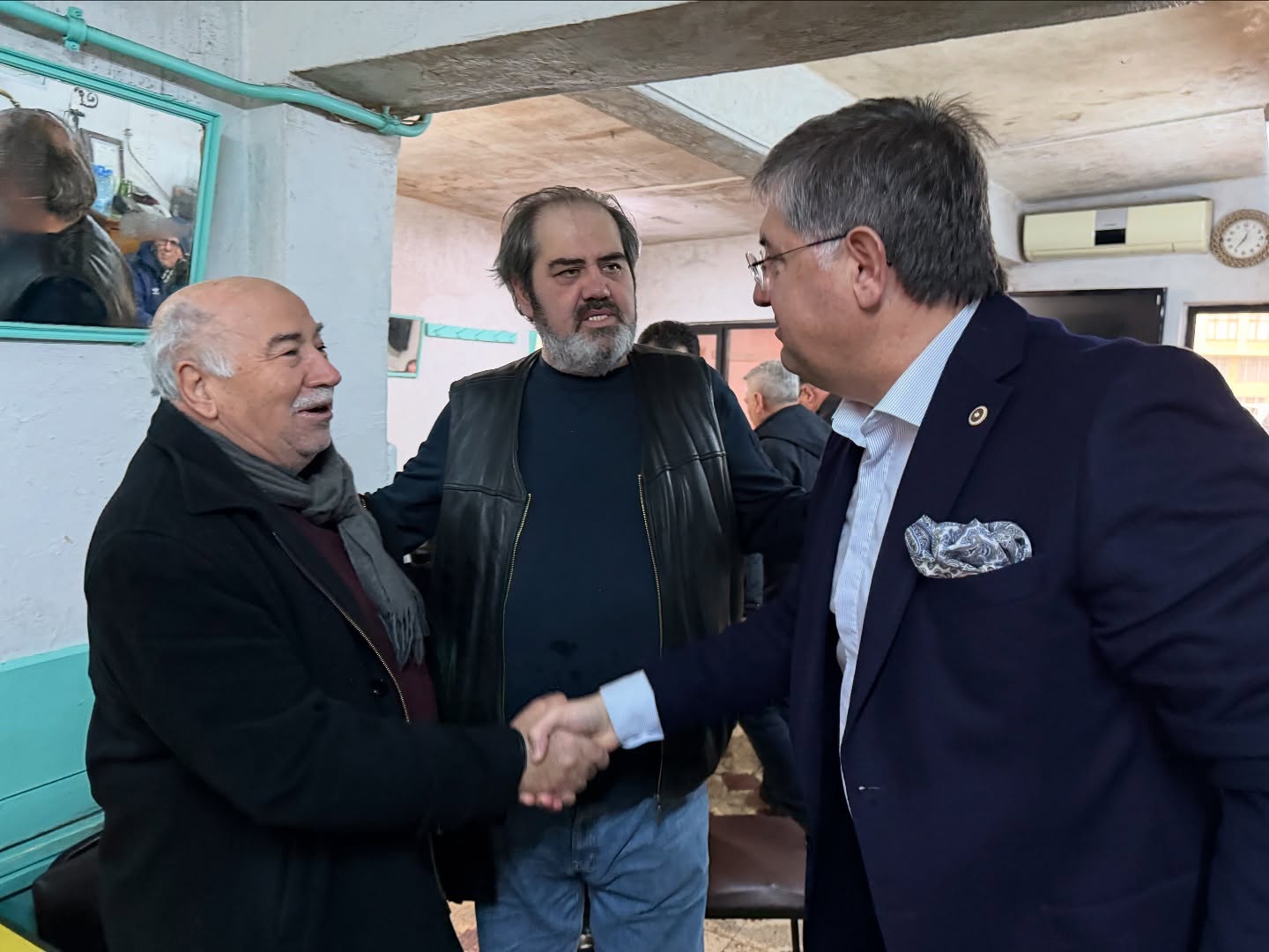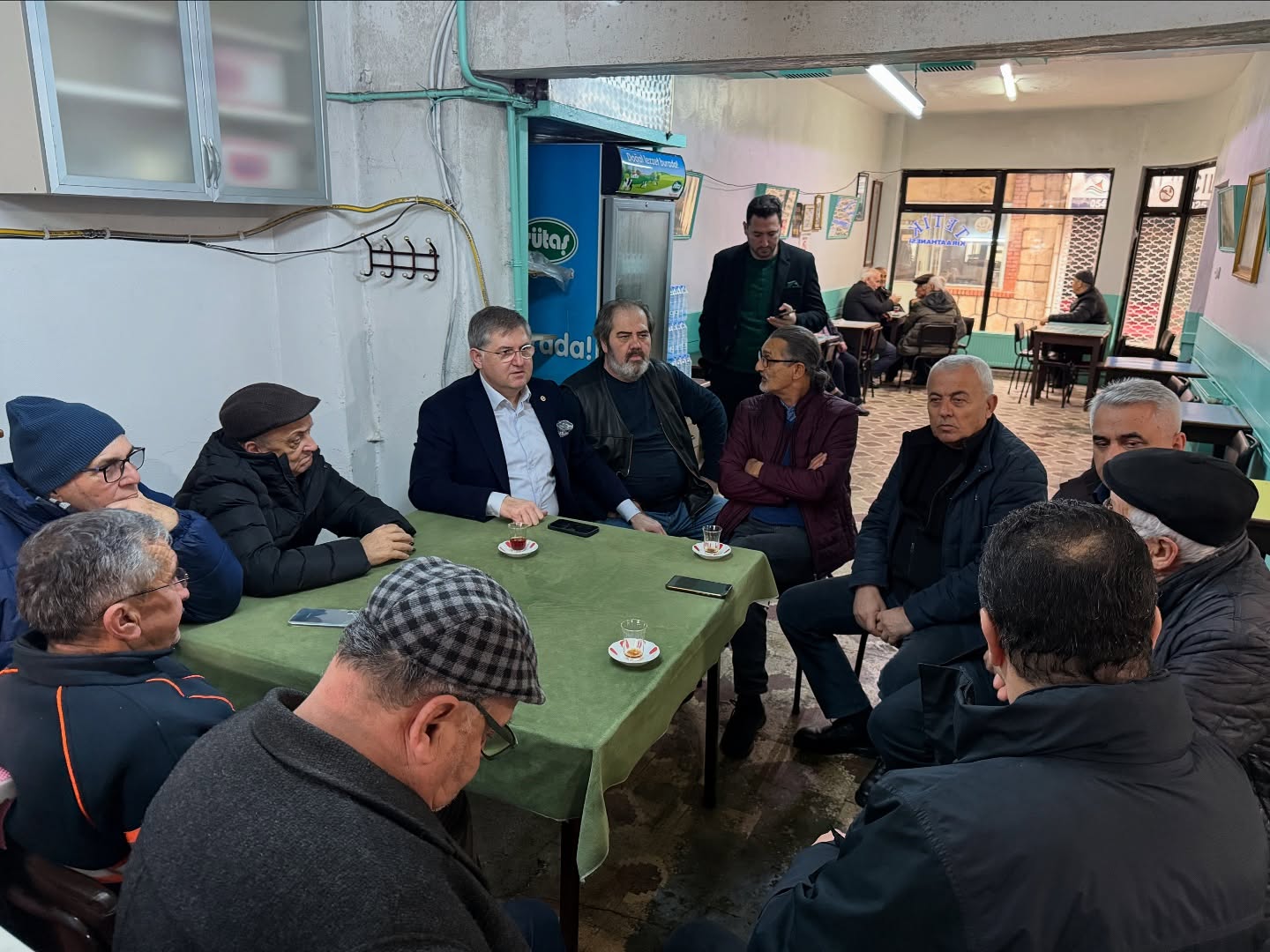 Ziyaret sırasında kahvehanede toplanan emeklilerle bir araya gelen Yıldızlı, ülkenin geleceği hakkında sohbet etti.