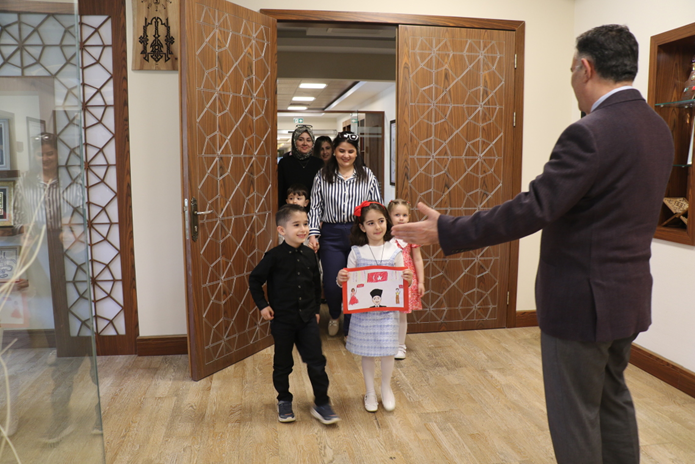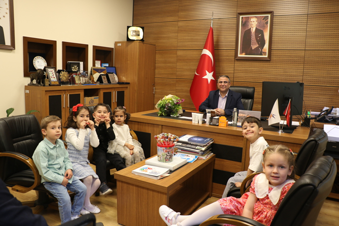 Rektör Prof. Dr. Hacı Ali Mantar, minik konuklarıyla yakından ilgilenerek 23 Nisan Ulusal Egemenlik ve Çocuk Bayramlarını kutladı. Çocukların geleceğin teminatı olduğunu vurgulayan Rektör Mantar, "Bugün burada geleceğimizin mimarları olan çocuklarımızla bir aradayız. Onların gözlerindeki ışıltı, yarınlara olan inancımızı daha da artırıyor. 23 Nisan, sadece çocuklarımızın bayramı değil, aynı zamanda Türkiye Büyük Millet Meclisi'nin açılışının ve milli egemenliğimizin ilanının da simgesidir. Bu anlamlı günde tüm çocuklarımızın bayramını en içten dileklerimle kutluyorum." ifadelerini kullandı.