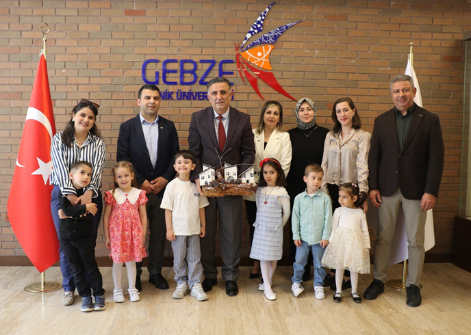 Gebze Teknik Üniversitesi (GTÜ) Rektörü Prof. Dr. Hacı Ali Mantar, 23 Nisan Ulusal Egemenlik ve Çocuk Bayramı dolayısıyla Minik Çınar Anaokulu öğrencilerini makamında ağırladı. Neşeyle Rektörlük makamına gelen minikler, geri dönüşüm malzemelerinden özenle hazırladıkları "Ağaç Mahalle" projesini Rektör Prof. Dr. Hacı Ali Mantar 'a hediye ettiler.