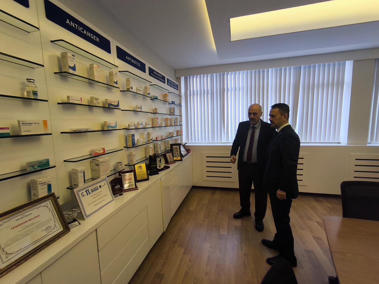 Atabay İlaç ve Kimya Sanayi Ticaret Genel Müdürü Mehmet Adil Kaya, İşletme Müdürü Sefer Kaya ve Fabrika Direktörü Şahin Gürsel tarafından karşılanan Vali Aktaş, burada işletmenin yapmış olduğu faaliyetler hakkında bilgiler aldı.