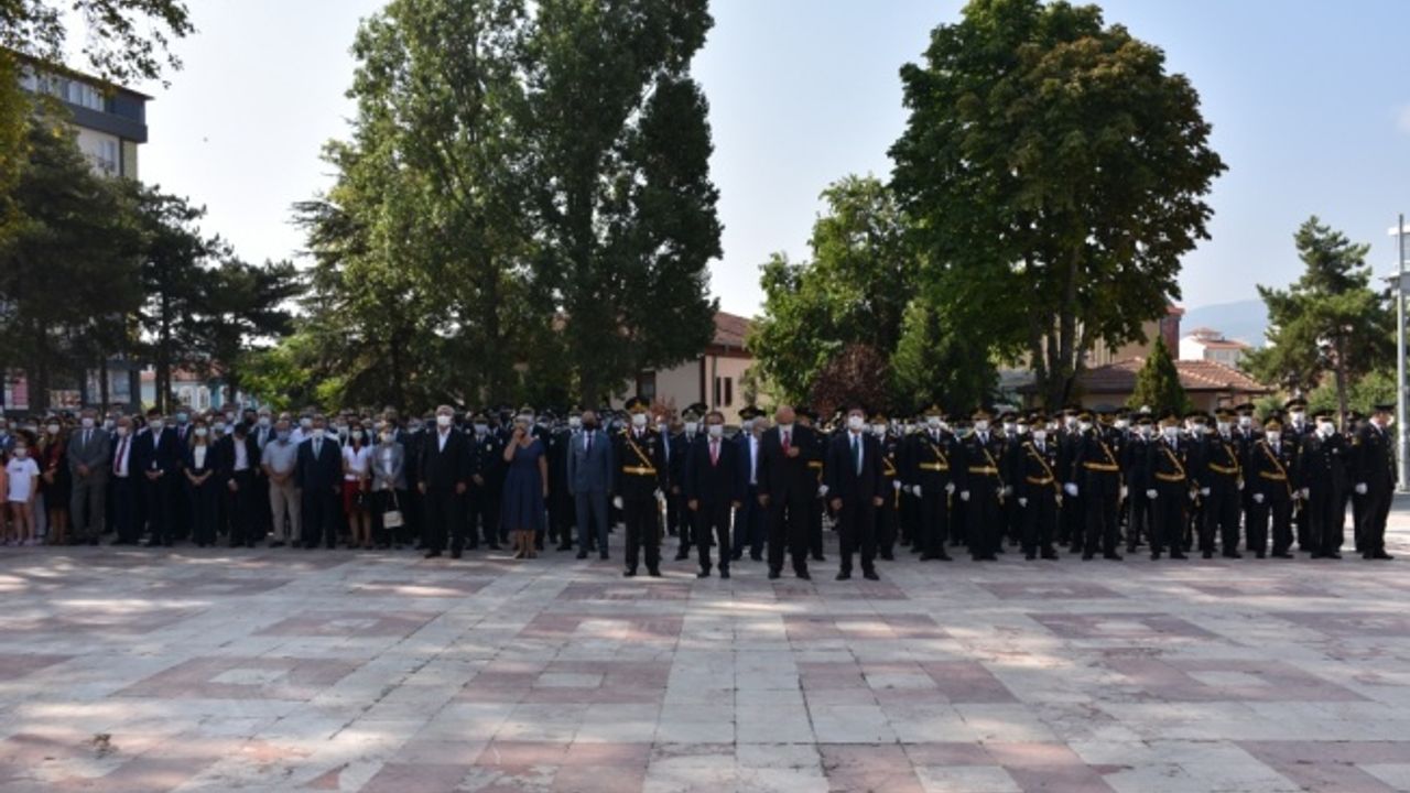 Zafer Meydanı'ndaki törende, Kütahya Valisi Ali Çelik, Garnizon ve Kütahya Hava Er Eğitim Tugayı Komutanı Tuğgeneral Necati Gündüz, Belediye Başkanı Alim Işık, Atatürk Anıtı'na çelenk bıraktı.