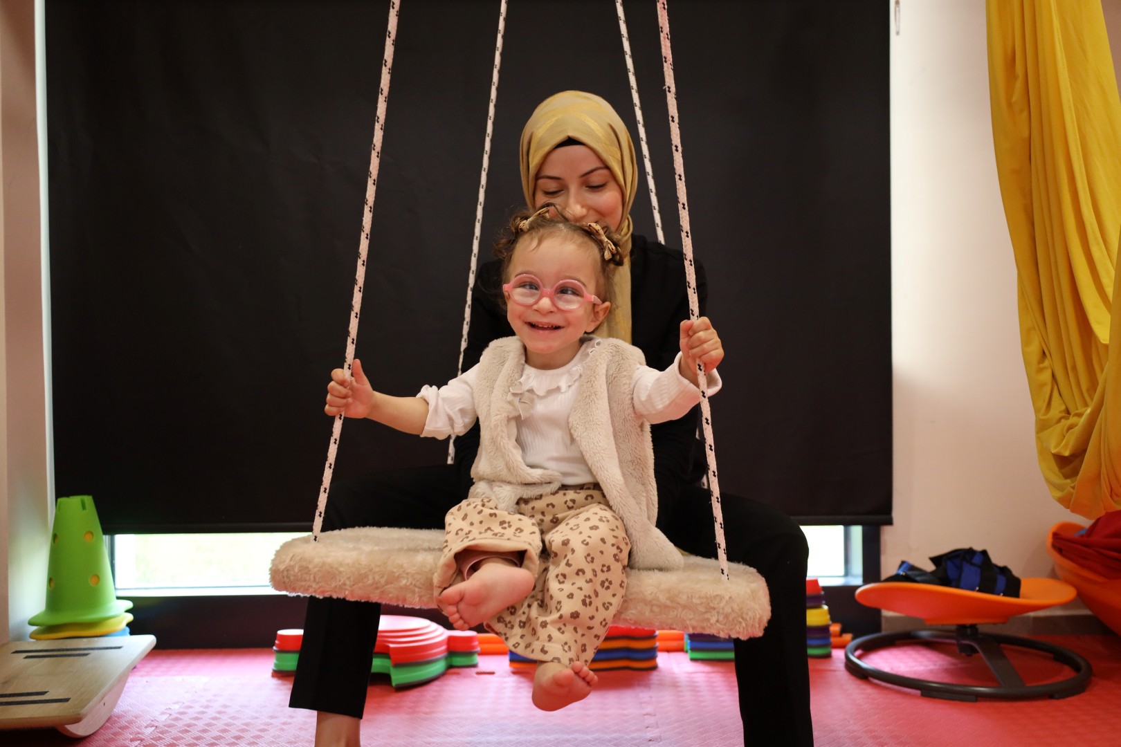 Gonca’nın tatlı dilli sevecen ve bir o kadar da güler yüzlü üyesi İpek Özkal merkez için çok değerli. 25+5 haftalık dünyaya gelen İpek, 4,5 ay yoğun bakımda kaldı. Annesi Esra Özkal o günleri “Evde neşe yoktu, sanki hava kararınca ev de kararıyordu” şeklinde özetledi. Tüm zorluklara rağmen İpek yaşama direndi. Hem minik İpek’in hem de ailesinin mücadelesi bugün birçok aileye örnek oluyor. Bu süreci Gonca ile yürüten anne Esra Hanım, İpek’in burada kendini güvende hissettiğini, yaşına uygun etkinlikler sayesinde hem sosyalleştiğini hem de özgüven kazandığını söyledi. Merkezdeki ilgi ve şefkatin, özellikle küçük yaşta olan İpek’in gelişimine büyük katkı sunduğunu vurgulayan Esra Hanım, “Onu her gün biraz daha mutlu ve istekli görmek benim için tarif edilemez bir duygu” ifadelerini kullandı.