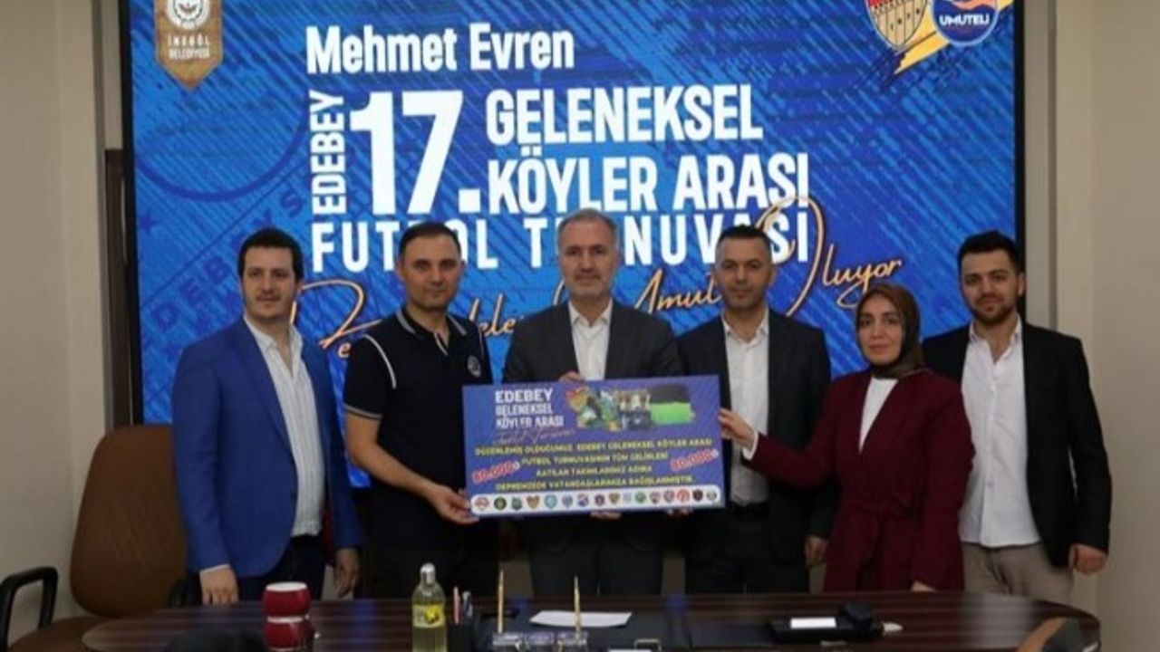 Bursa'nın İnegöl ilçesinde Edebey Spor Kulübü tarafından bu yıl 17’ncisi düzenlenen Geleneksel Köyler Arası Futbol Turnuvasının 80 bin TL’lik geliri, kulüp yönetimi ve turnuva komitesinin kararıyla depremzedeler için kullanılmak üzere Umuteli Sosyal Yardım İşleri Müdürlüğüne bağışlandı.BURSA (İGFA) - Kahramanmaraş depremi sonrası büyük yıkımın yaşandığı 11 vilayete yardım etmek için adeta seferber olan İnegöl halkı, yaraların sarılması için desteğini sürdürüyor.