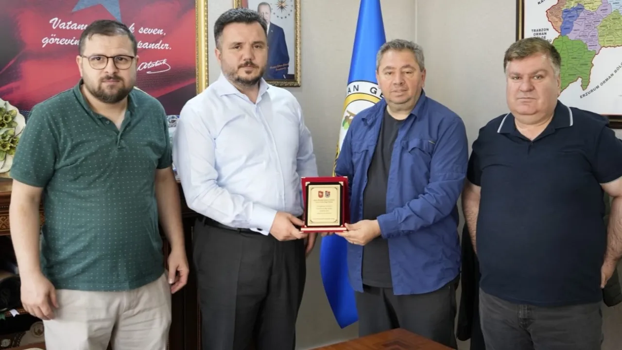 Artvin Trabzonspor Taraftarlar Derneği Başkanı Bayram Sarayoğlu ve yönetim kurulu üyeleri, Orman Bölge Müdürü İbrahim Ethem Gürsoy’u ziyaret ederek dernek faaliyetlerini anlattı ve destekleri için teşekkür etti.ARTVİN (İGFA) - Artvin Trabzonspor Taraftarlar Derneği Başkanı Bayram Sarayoğlu, yönetim kurulu üyeleri Alim Çelik ve Murathan Taşkın ile birlikte Artvin Orman Bölge Müdürü İbrahim Ethem Gürsoy’u makamında ziyaret etti.