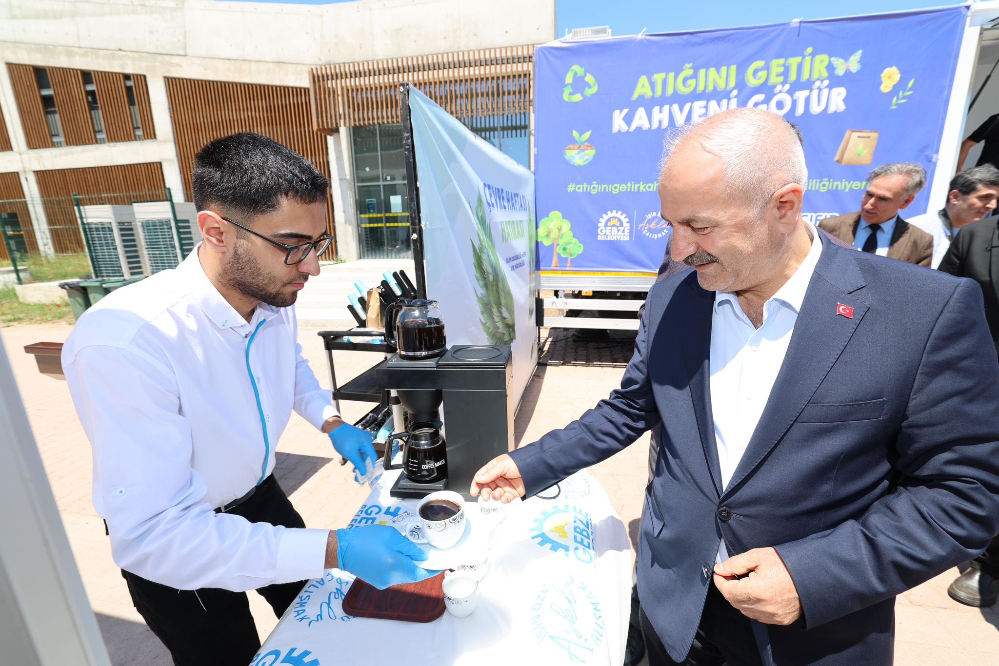 Gebze Belediyesi Temizlik İşleri Müdürlüğü, Çevre Haftası kapsamında farkındalık yaratmak amacıyla “Atığını Getir, Kahveni Götür” konseptli özel bir program başlattı. Etkinlik, çevre bilincini artırmak ve geri dönüşüm alışkanlığını teşvik etmek amacıyla Gebze Teknik Üniversitesi kampüsünde hayata geçirildi. Hizmete giren mobil atık aracının hizmete alınması programına Gebze Kaymakamı Mehmet Ali Özyiğit, Gebze Belediye Başkanı Zinnur Büyükgöz, Gebze Teknik Üniversitesi Rektörü Hacı Ali Mantar, İlçe Sağlık Müdürü İlhan Kadıoğlu, öğretim görevlileri ve öğrenciler katıldı.