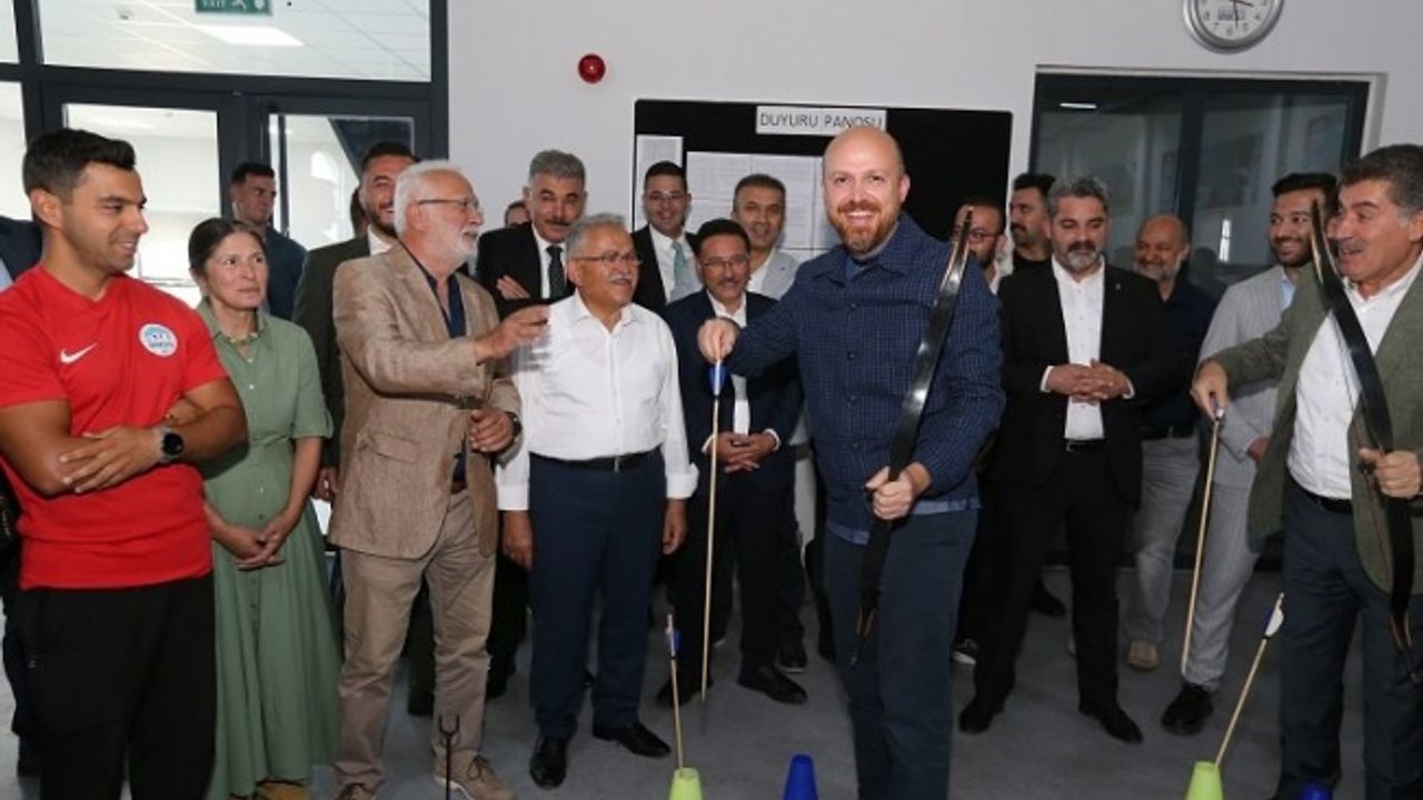 Protokol ile birlikte tesisleri gezen Dünya Etnospor Konfederasyonu Başkanı Bilal Erdoğan, ok atmayı da ihmal etmedi.