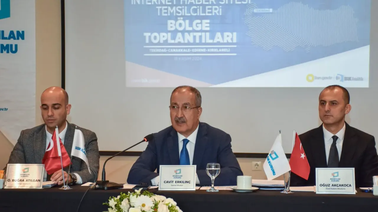 Basın İlan Kurumu (BİK) Genel Müdürü Cavit Erkılınç, Çanakkale, Edirne, Kırklareli ve Tekirdağ illerinde yayımlanan gazete ve internet haber sitelerinin temsilcileriyle bir araya gelerek, basının sorunlarını dinledi.Erdoğan DEMİR / EDİRNE (İGFA) - Tekirdağ’da düzenlenen bölge toplantısında konuşan BİK Genel Müdürü Cavit Erkılınç, Basın Kanunu’nda yapılan ve internet haber sitelerinin süreli yayın sayılmasına imkân tanıyan değişikliğin gerçekleştiği 2022 yılında yaşanan tartışmaları hatırlatarak, o dönemde yaşanan kısır çekişmelerin ciddi zaman ve maddiyat kaybına neden olduğunu söyledi. “Bugün geriye dönüp baktığımda iyi ki sahaya çıkmış ve sizlere meselenin gerçekte ne olduğunu anlatmışız” diyen Erkılınç, Kurum olarak sahaya inmelerinin ve gazete sahipleriyle yüz yüze görüşmelerinin karşı yönden esen rüzgarı tersine çevirdiğini kaydetti.