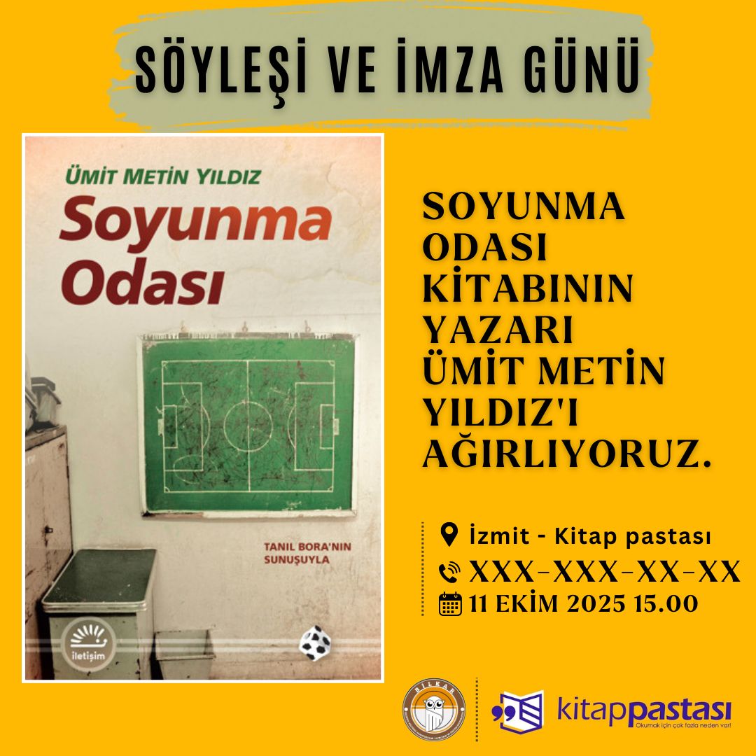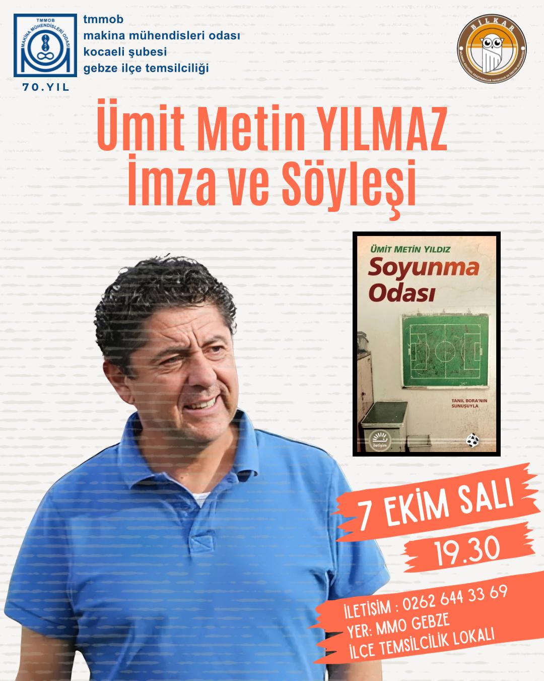 Edebiyat ile hızlı bir giriş yapan Gebze’nin kültür sanatta öncü sivil toplum örgütü; Kocaelspor ve Gebzespor eski Teknik Direktörü Ümit Metin Yıldız’ı “Soyunma Odası” adlı kitabıyla 7 Ekim’de Gebze’de MMO Gebze, 11 Ekim’de İzmit’te Kitap Pastası ortak etkinliğinde ağırlayacak
