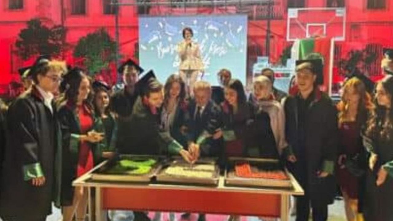 Daha sonra kendileri için özel olarak hazırlanan pastayı kesen öğrenciler, hep birlikte keplerini havaya fırlatarak mezuniyet coşkusunu yaşadı. Törenin sonunda yapılan havai fişek gösterisiyle coşkuyu doruğa çıkardı.
