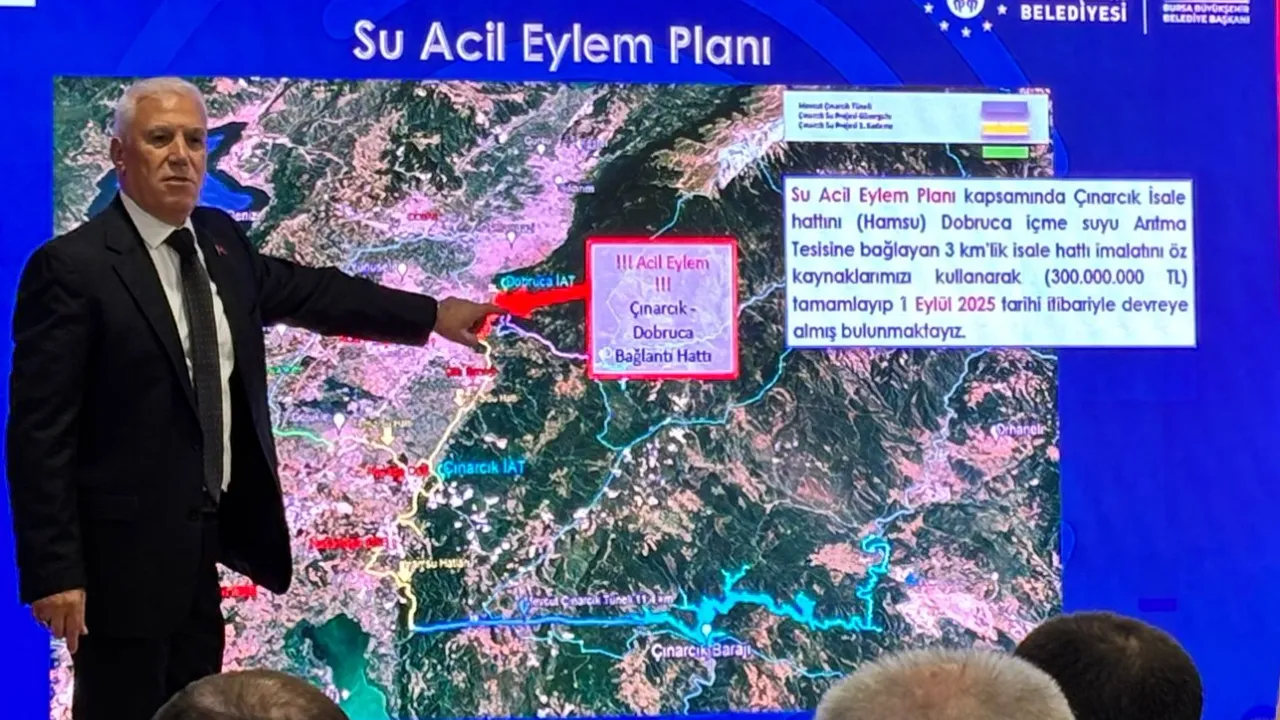 Kuraklık krizine dikkati çeken Bursa Büyükşehir Belediye Başkanı Mustafa Bozbey, Bursa'nın su kaynaklarındaki alarm durumunu ve küresel iklim krizinin kent üzerindeki etkilerini çarpıcı verilerle gözler önüne serdi. Doğancı Barajı’nda doluluk yüzde 6,81, Nilüfer Barajı’nda sıfır olduğunu belirten Bozbey, suyun yüzde 35’inin 250 metre derinlikteki yeraltı kuyularından temin edildiğini söyledi.Adiviye ELBAŞ - gazeteabc / BURSA (İGFA) - Bursa Büyükşehir Belediye Başkanı Mustafa Bozbey, eylül ayı basın toplantısında 'gençlik odaklı vizyon' açıklamalarının yanı sıra kentin su kaynaklarındaki kritik durumu ve kuraklık tehdidiyle ilgili de çarpıcı açıklamalarda bulundu.