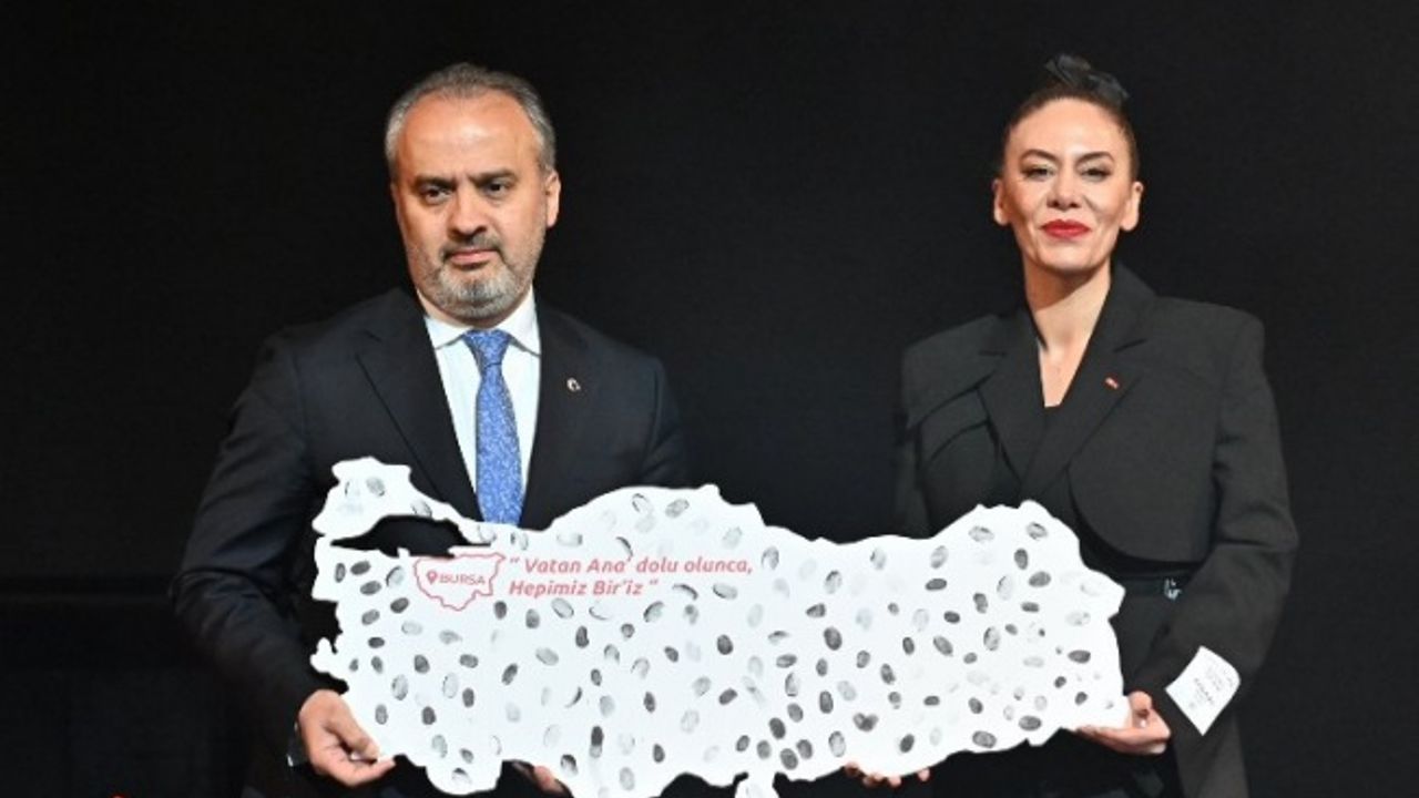 Programın sonunda okunan İstiklal Marşı’na tüm salon büyük bir coşkuyla eşlik ederken, projenin mimarı Ehli Sanat Derneği yöneticisi Eda Sürmeli, etkinlik öncesi fuaye alanında hazırlanan ve tüm kadınların parmak izlerini taşıyan Türkiye Haritası panosunu da Başkan Aktaş’a hediye etti.
