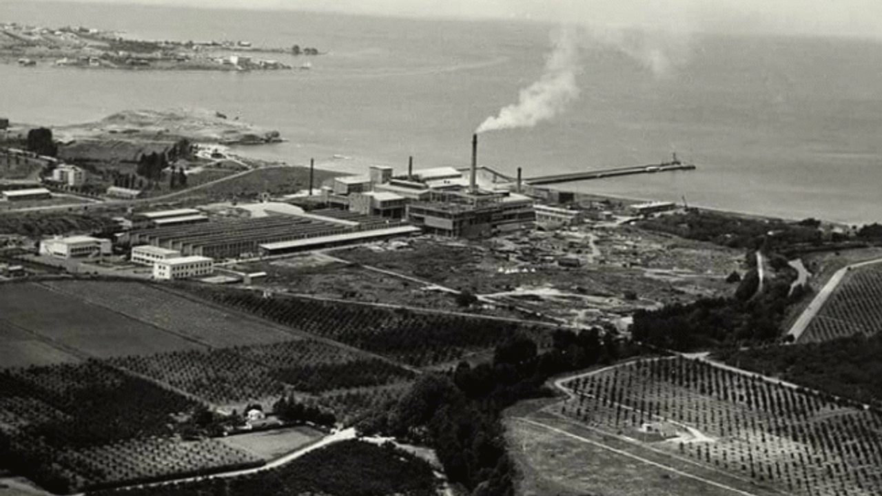 Havadan çekilen fotoğrafta 1959 yılında temeli atılan ve 1961 yılında açılan fabrika ve alanı görülüyor.