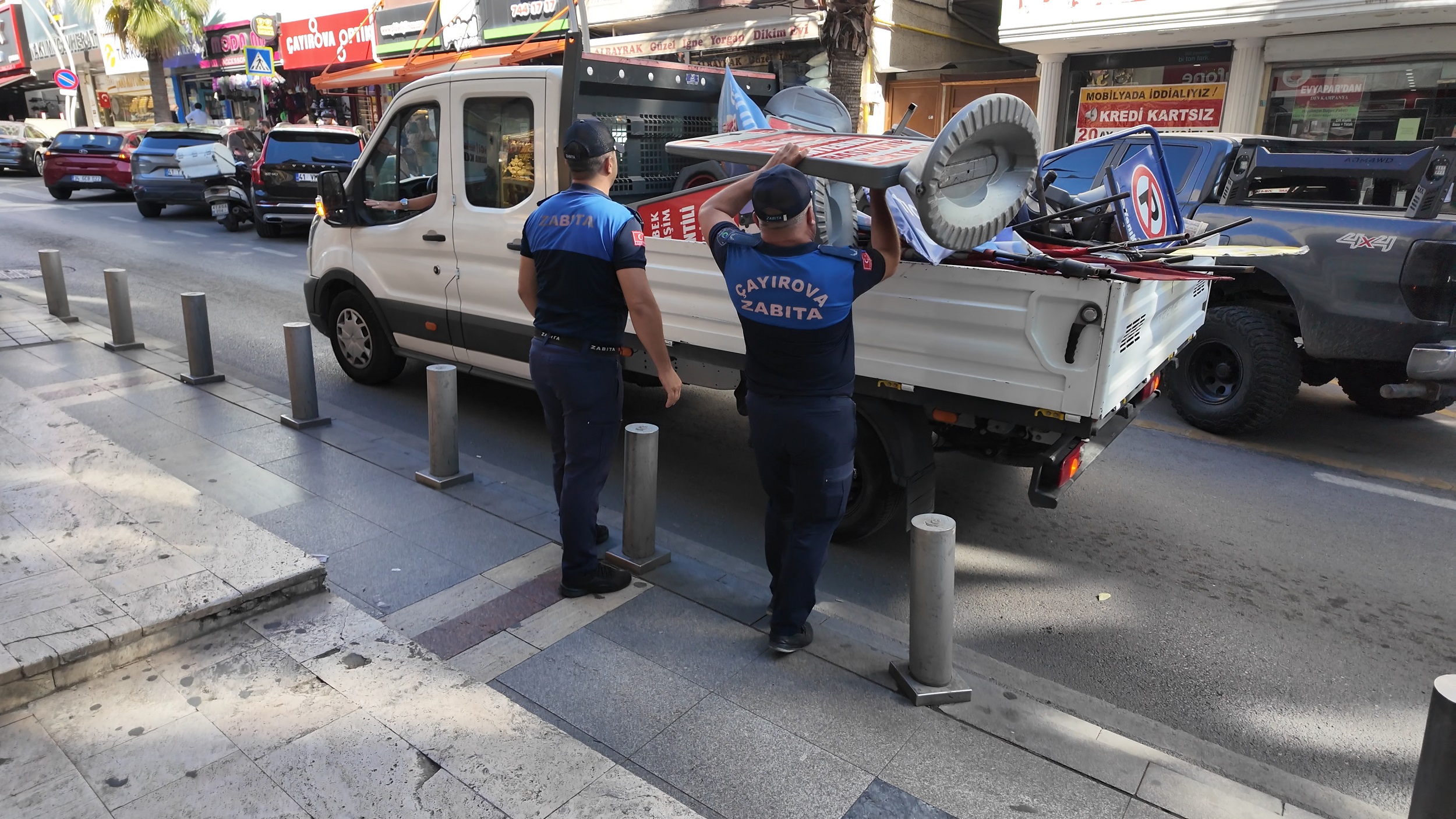 Çayırova Belediyesi Zabıta Müdürlüğü ekipleri, denetimlerine aralıksız bir şekilde devam ediyor. Çayırovalı ilçe sakinlerinin tüketici haklarını korumak, yaya güvenliğini ve huzurunu sağlamak için denetimlerini aksatmayan Çayırova Zabıtası, son olarak ilçenin en işlek caddelerinden olan Fatih Caddesi’nde denetim gerçekleştirdi. Zabıta Müdürlüğü’ne bağlı ekipler, İlçe Emniyet Müdürlüğü ekipleriyle birlikte, Fatih Caddesi’nde yayaların güvenli ve rahat hareket etmesine engel olan duba, reklam panoları, flamalar vb. ürünleri toplayarak işgalin önüne geçtiler.