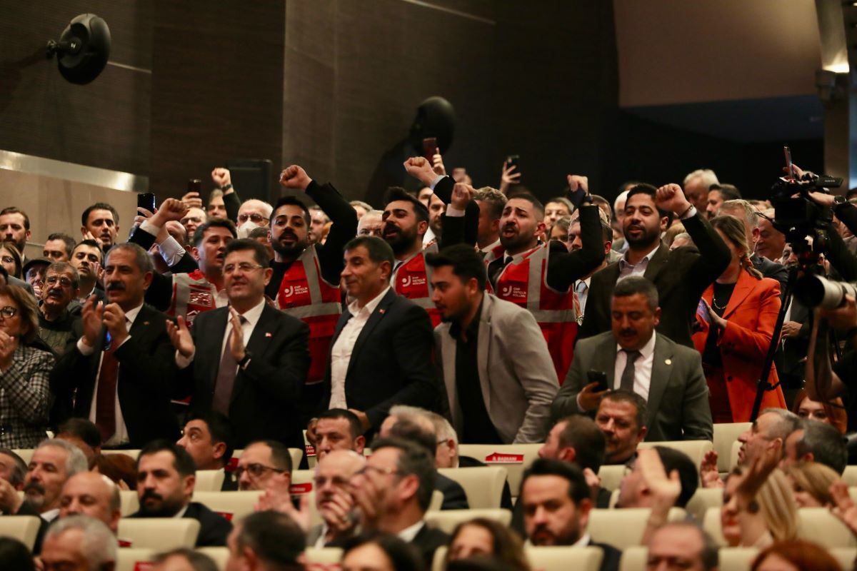 İmamoğlu da Beykoz Belediye Başkanı Alaattin Köseler’in hukuksuz bir şekilde gözaltına alınmasını “utanç verici” sözleriyle eleştirerek, “Sanıyorlar ki, ellerindeki geçici yetkilerle milletin kararına el koyabilirler. Sanıyorlar ki, mahkemelerde halkın partisini durdurabilirler. Zavallılar. Çaresizler. Acizler. Onlara hatırlatalım; CHP, halkın kendisidir. Halktır, halk. Halkın partisidir. Halkı durduramazsın, engelleyemezsin, kapatamazsın. Ekrem İmamoğlu da bu halkın, bu milletin oğludur, evladıdır. Onu, milletin elinden alamazsın. Sanıyorlar ki, Ekrem İmamoğlu’nu aday yapmazlarsa, kurtulurlar. Şu salonda kaç tane İmamoğlu var biliyor musun? Görmüyorlar, işitmiyorlar. Yahu hepimizi yasaklasan ne olur? Bu memleketin her bir şehrinden, her bir ilçesinden, beldesinden, köyünden bir Ekrem İmamoğlu karşına dikilir. Buradaki her bir milletvekili, her bir CHP il başkanı, her bir kadın kolları başkanı, gençlik kolları başkanı, her bir CHP neferi bizim Cumhurbaşkanı adayımızdır. İcraatçı ve halkçı CHP’li belediyelerin büyük başarısının mimarı kıymetli başkanlarımızın her biri adaydır, bizim adayımızdır. Kıymetli milletimiz, çok kıymetli partililerim, partimin çok kıymetli yöneticileri; kurtuluş yok tek başına, haydi şimdi hep birlikte görev başına hep beraber görev almaya, hep birlikte yol almaya. Bu yolumuzun uzun olduğunu hepimiz biliyoruz. Allah'ın izniyle başaracağız. Kararlıyız. Türkiye'nin her bir yanını gezmeye başlayacağız. Bir yandan görev yaparken, bir yandan ülkemizi geleceğe hazırlayacağız. En hızlı şekilde sandığı milletimizin önüne getireceğiz. Cumhuriyet Halk Partisi başaracak, Türkiye kazanacak” diye konuştu.