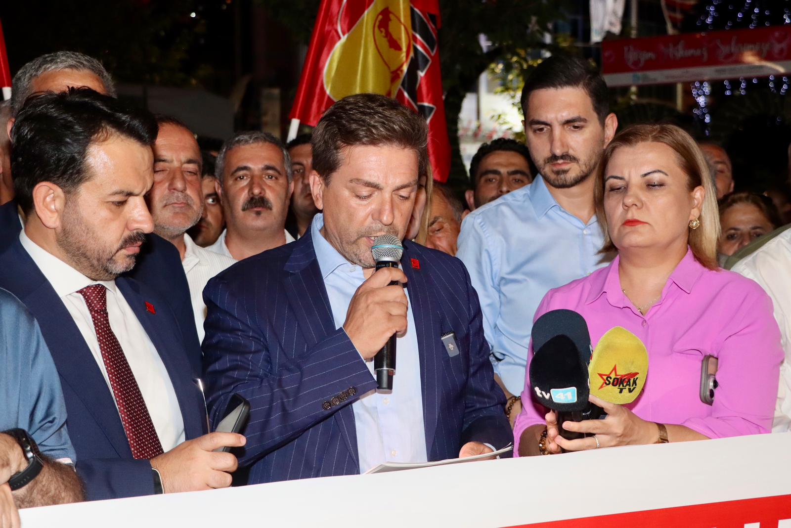Konuşmasında parti liderlerine ve belediye başkanlarına olan desteğini yineleyen Bülent Sarı, "Başta; memleketin her köşesini karış karış gezen, siyaseti salonlardan çıkartıp sokaklara taşıyan Genel Başkanımız Özgür Özel olmak üzere; tek suçu sandıkta kaybetmemek olan ve tutsak tutulan Cumhurbaşkanı Adayımız Ekrem İmamoğlu'nun ve yine tek suçu halka hizmet etmek olan belediye başkanlarımızın sonuna kadar yanındayız" dedi.