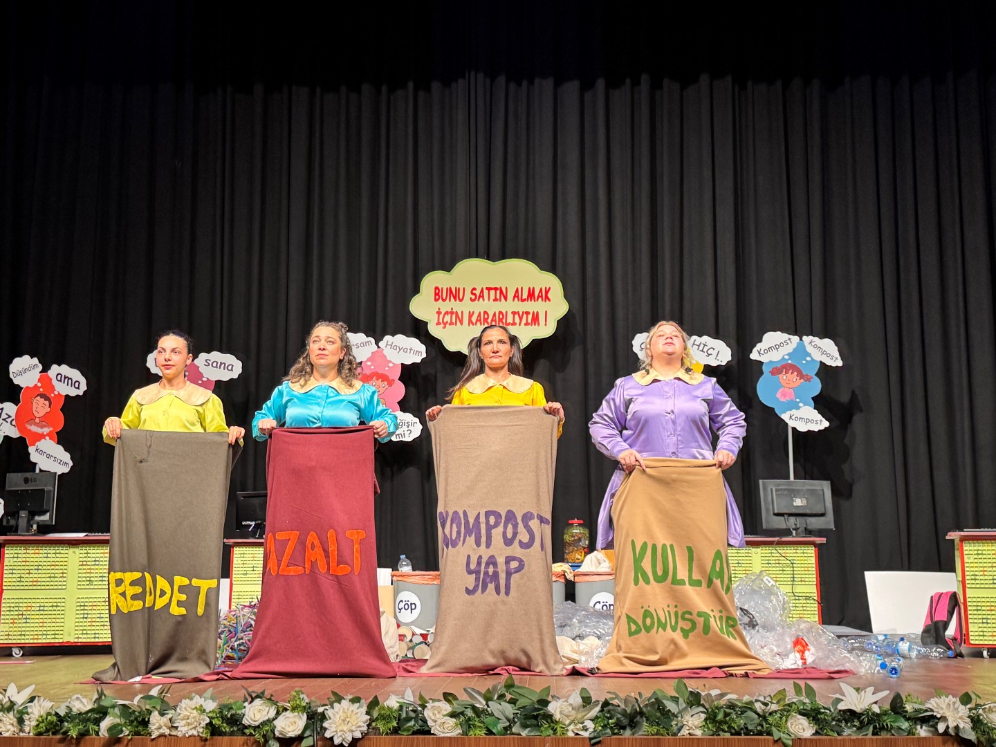 “Çöpe Hiç At, Sıfır Olsun” tiyatro oyunu; çocuklara günlük yaşamda oluşturdukları atıkları fark ettirerek, geri dönüşüm ve sürdürülebilir yaşam bilinci kazandırmayı amaçlıyor. Atıkları kaynağında ayırma, ihtiyaç dışı tüketimden kaçınma, bozulan eşyaları onarma ya da yeniden değerlendirme gibi konular eğlenceli, mizahi ve duygusal bir dille işleniyor. Oyun, çöp kovalarının çiçek saksısına dönüşebileceği hayalinden yola çıkarak; reddet, azalt, yeniden kullan, dönüştür, kompost yap ilkeleri doğrultusunda atık yönetimini çocuklara etkili bir şekilde aktarıyor.