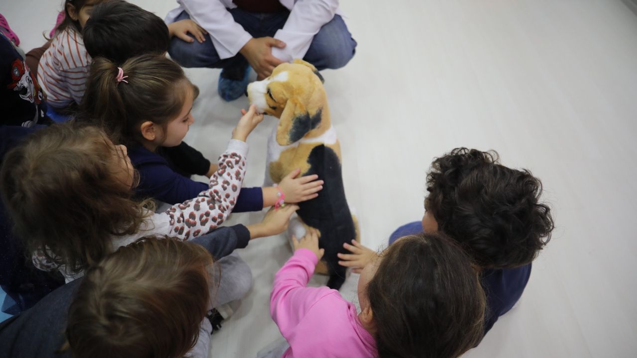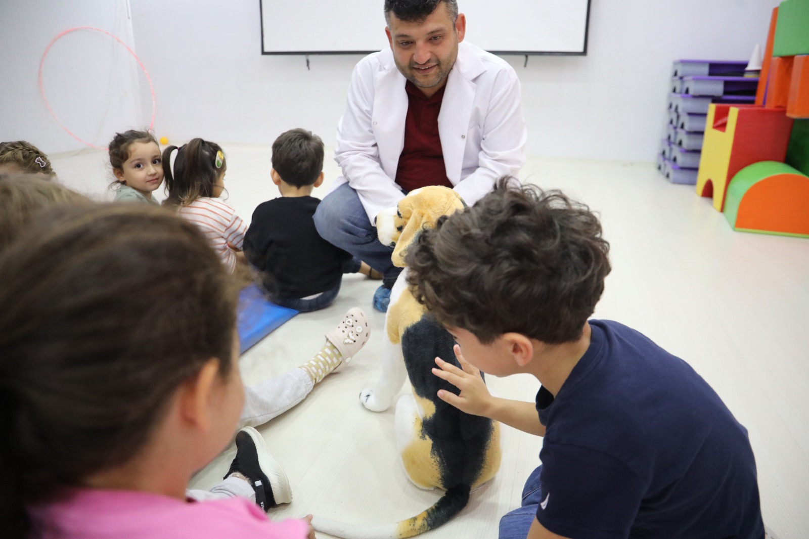 Veteriner Hekim Hilmi Burak Yalgı 4 Ekim Hayvanları Koruma Günü’nün anlam ve önemini öğrencilere anlattı. Ardından çocuklar veteriner hekim eşliğinde Patibüs’ü incelediler. Veteriner Burak Yalgı gerçekleştirilen etkinlikle çocuklarda hayvan sevgisi ve bilinç oluşturmayı amaçlandıklarını ifade etti.