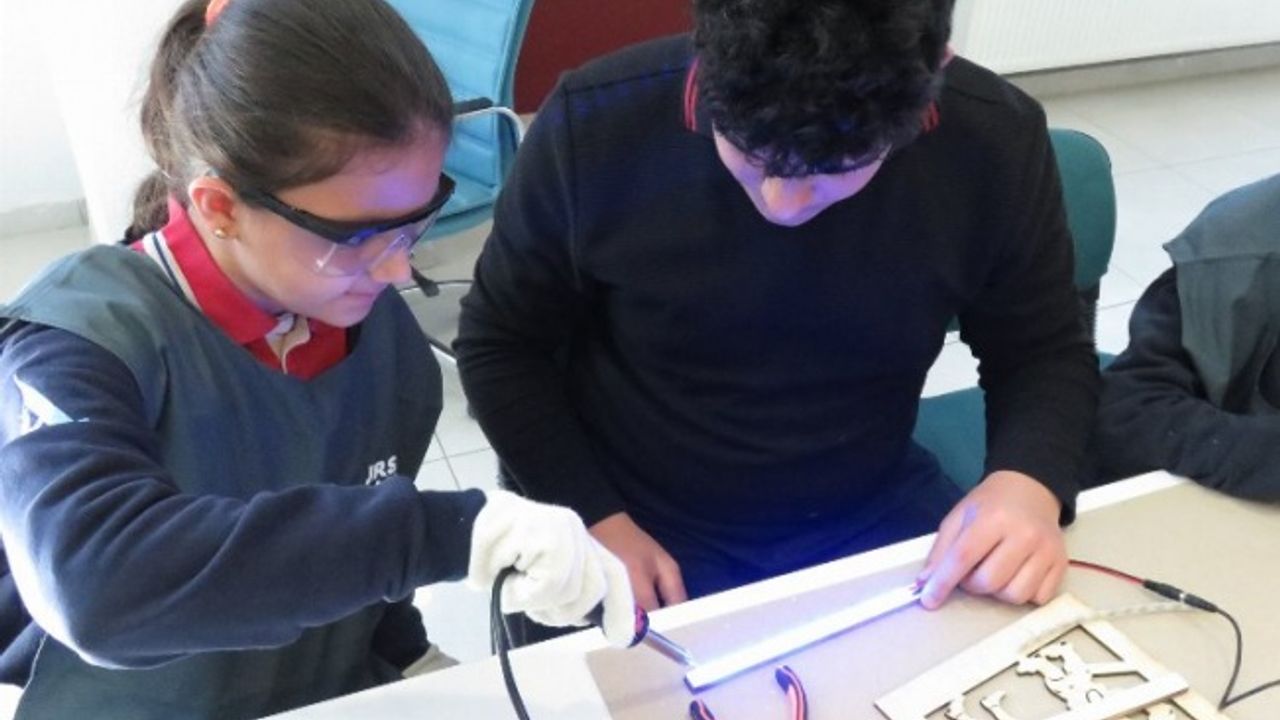 Depremin etkili olduğu şehirlerden Bursa’ya gelerek eğitim hayatlarını Nilüfer Azizsancar Ortaokulu’nda sürdüren 15 öğrenci, Büyükşehir Belediyesi ve Demirtaşpaşa MTAL Okulu işbirliğiyle düzenlenen etkinlik kapsamında BTM’yi ziyaret etti. Bursa’nın sembolü olan Hacivat ve Karagöz figürlü ahşap duvar lambası tasarım beceri atölyesine katılan öğrenciler, el becerilerini kullanarak kendi tasarımlarını yaptı.