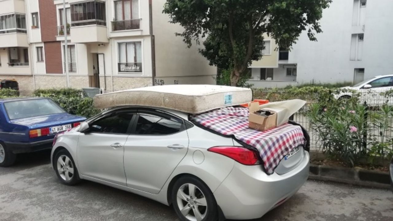 Bir vatandaşın aracının üzerine yatak ve "Seni seviyorum" yazılı battaniye koyması, ilginç görüntüler oluşturdu.AA
