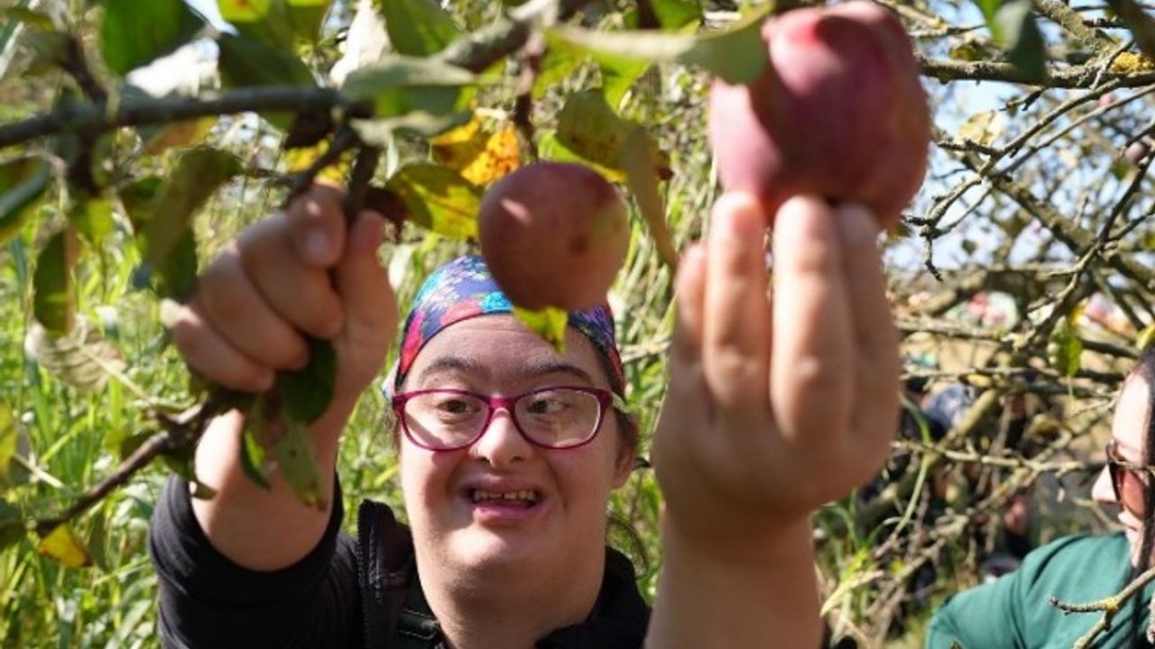 Arazide bulunan elmaların hasadı için Kusursuz Kafe personelleri, farkındalık amacıyla hasada yardım etti.