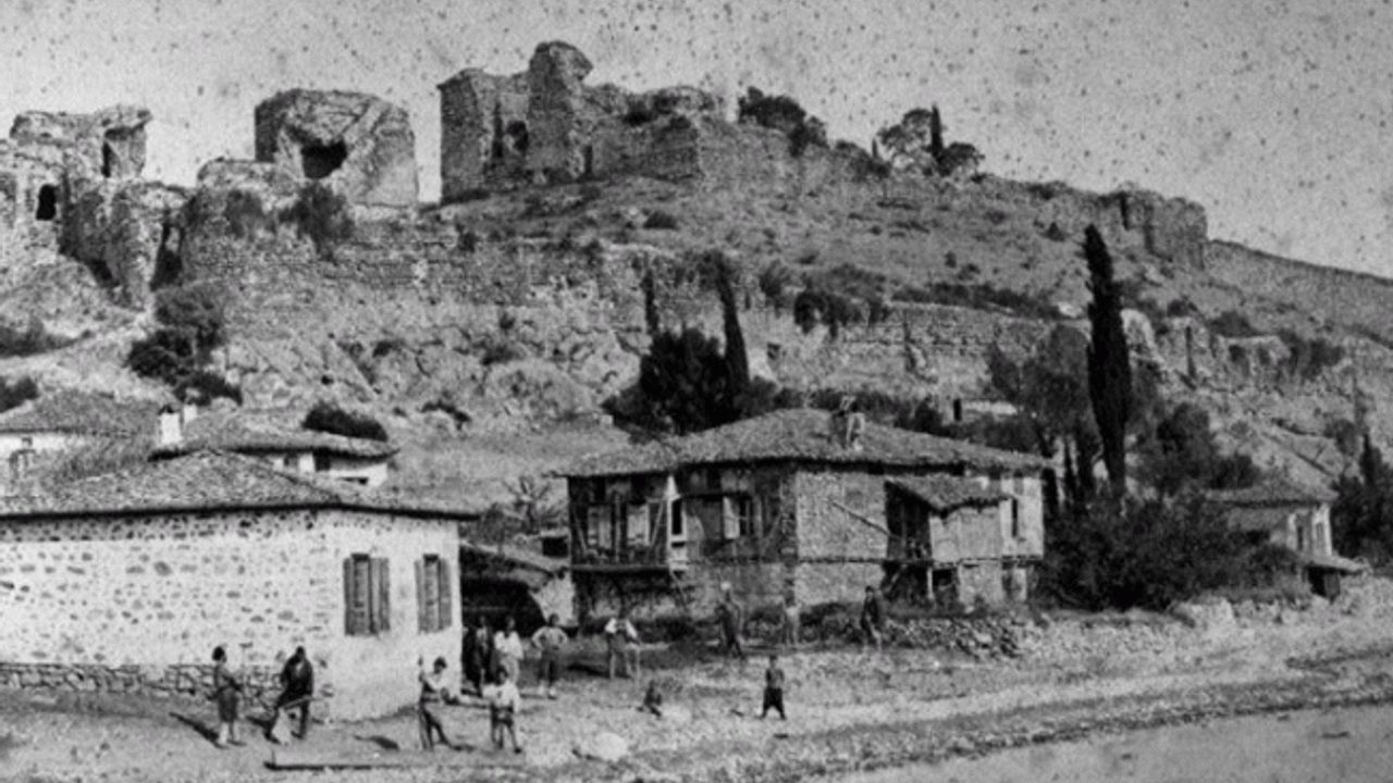 Gebze'nin en eski tarihi yapısı olan Eskihisar Kalesine ait çok eski bir siyah beyaz fotoğraf.