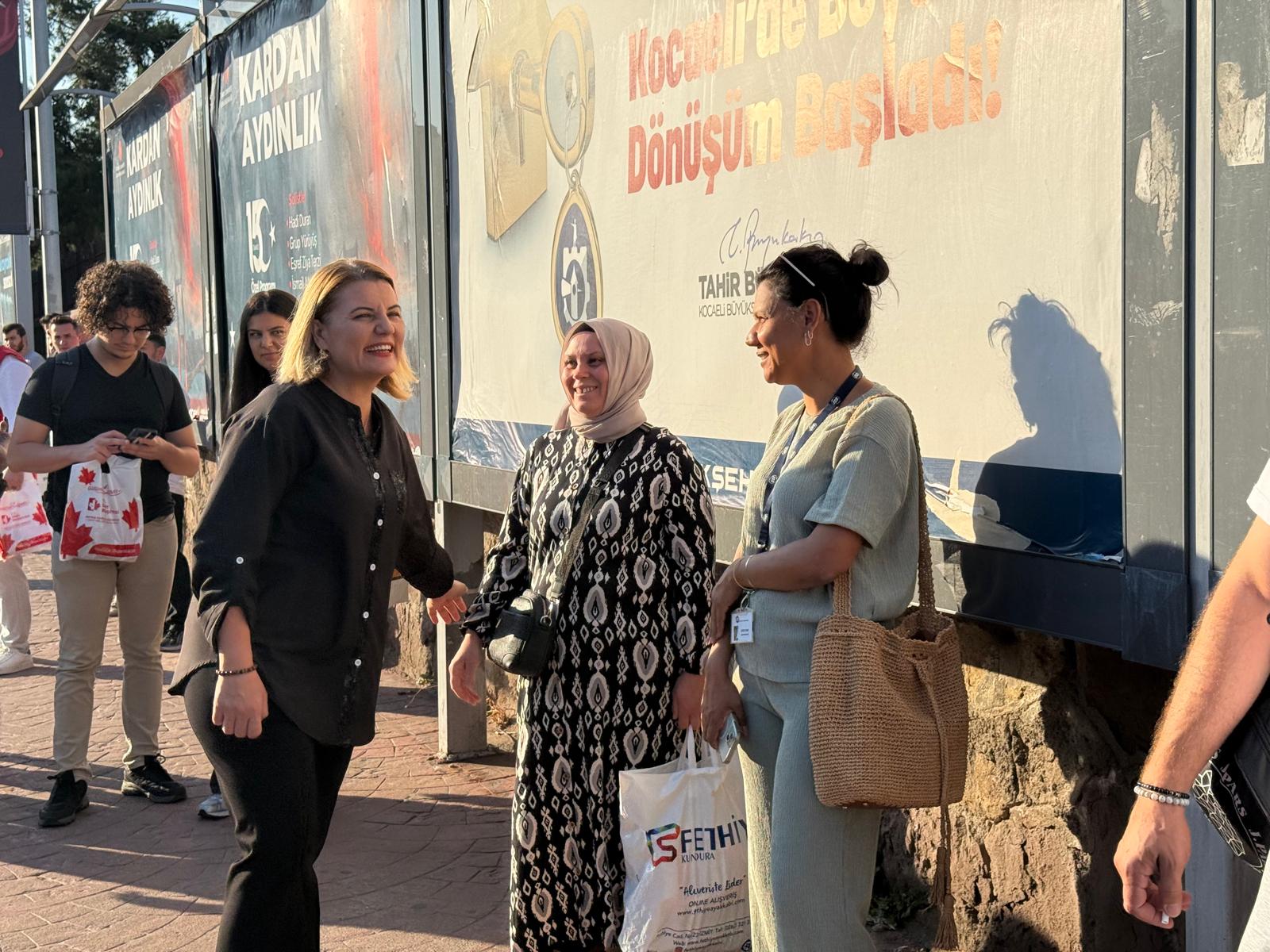 Halkla iç içe olmaya özen gösteren İzmit Belediye Başkanı Fatma Kaplan Hürriyet, emekçileri ziyaret etmeye devam ediyor. Fatma Başkan, bu sabah erken saatlerde Orduevi’ne giderek servis bekleyen işçilere kolaylıklar diledi.