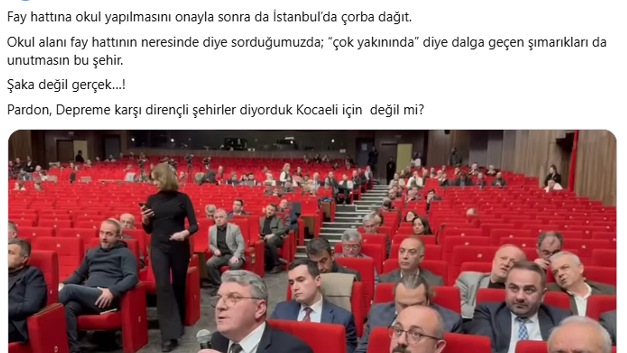 Deprem sonrası sosyal medya üzerinden değerlendirmelerde bulunan Başkan Hürriyet, Kocaeli Büyükşehir Belediyesi Şubat ayı meclis toplantısında gündeme gelen ve CHP’nin muhalefet şerhi koyduğu Başiskele’deki okul projesine dikkat çekerek, “Fay hattına okul yapılmasını onayla sonra da İstanbul’da çorba dağıt. Okul alanı fay hattının neresinde diye sorduğumuzda; “çok yakınında” diye dalga geçen şımarıkları da unutmasın bu şehir. Şaka değil gerçek! Pardon, Depreme karşı dirençli şehirler diyorduk Kocaeli için değil mi?” ifadelerini kullandı.