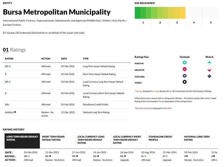 Uluslararası kredi derecelendirme kuruluşu Fitch Ratings, Bursa Büyükşehir Belediyesi'nin uzun vadeli yabancı ve yerel para cinsi kredi notu görünümünü yukarı yönlü revize etti.