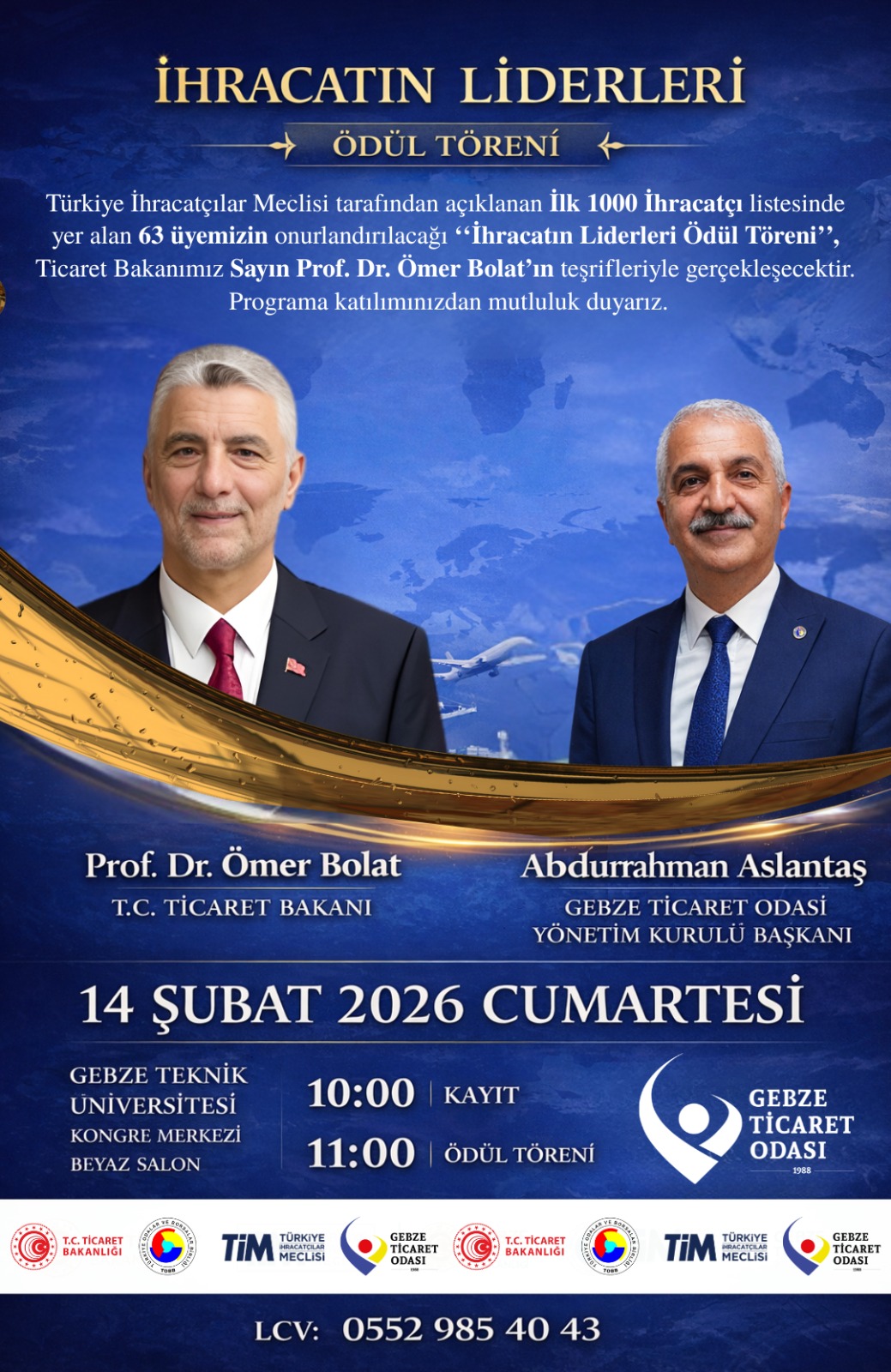 Ödül töreni, Ticaret Bakanı Sayın Prof. Dr. Ömer Bolat’ın teşrifleriyle gerçekleştirilecek. Etkinlik öncesinde saat 10.00’da kayıt ve kokteyl programı yapılacak.