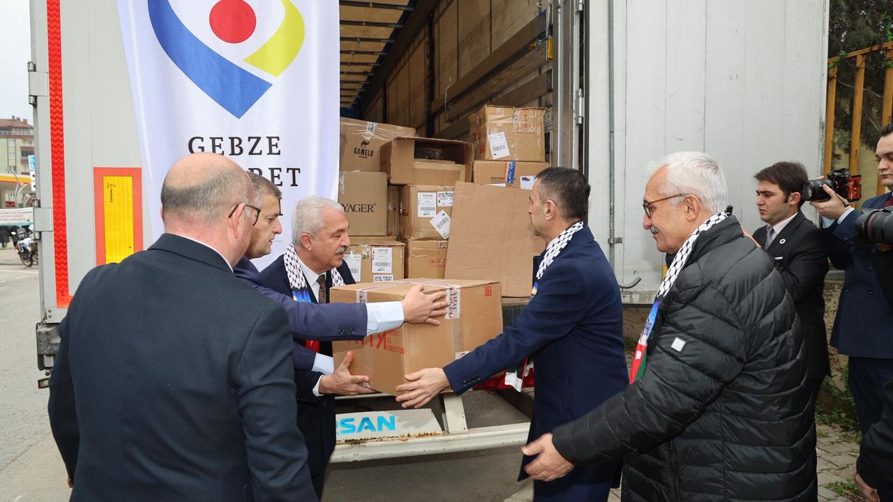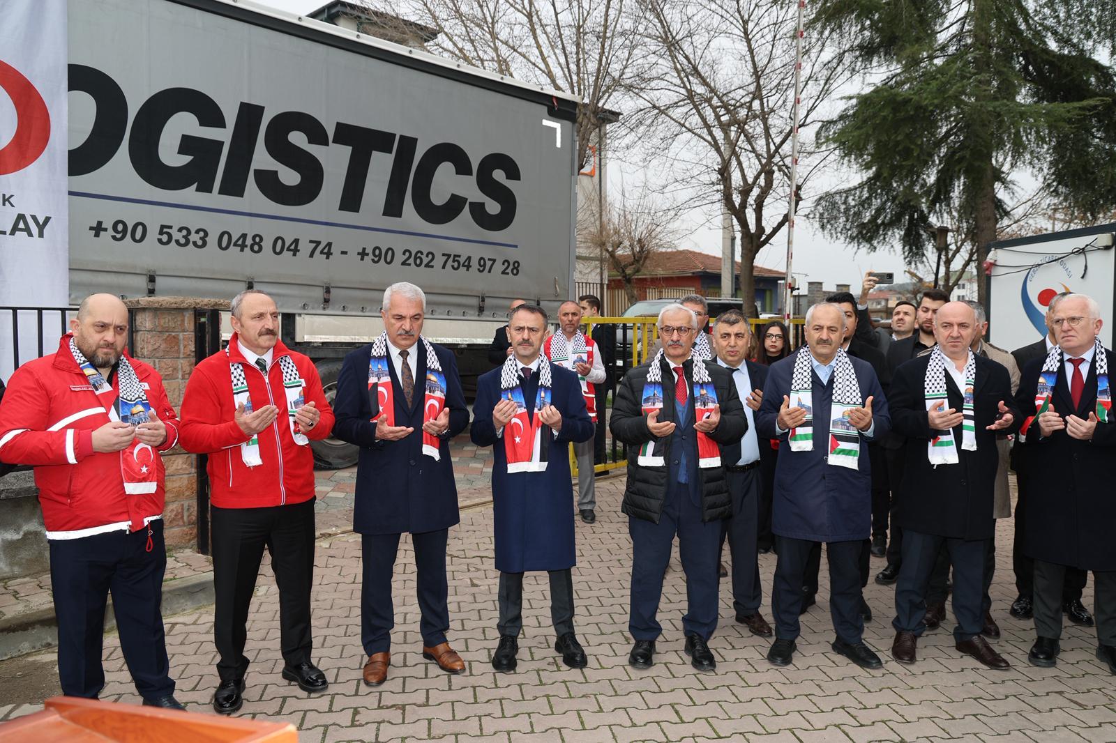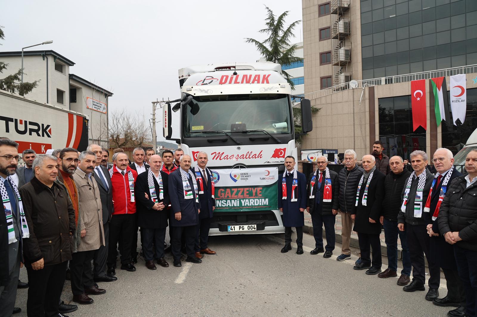 Gebze Ticaret Odası tarafından “Özgür Filistin, Özgür Gazze” sloganıyla hazırlanan yardım tırları düzenlenen tören ile Gazze’ye ulaştırılmak üzere yola çıktı.