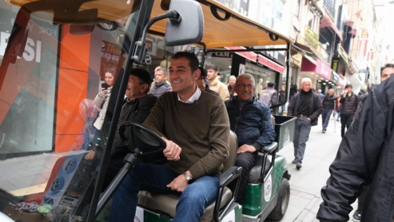 Giresun Belediye Başkanı Fuat Köse, sıra dışı bir harekete imza atarak halkın arasına karıştı ve golf aracının direksiyonuna oturup şehirde tur attı.GİRESUN (İGFA) - Meydan’dan başlayarak Gazi Caddesi boyunca Debboy’a kadar golf aracını kullanarak yaşlı vatandaşları taşıyan Giresun Belediye Başkanı Fuat Köse’nin bu hareketi vatandaşlar arasında büyük bir sevgi dalgası yarattı.