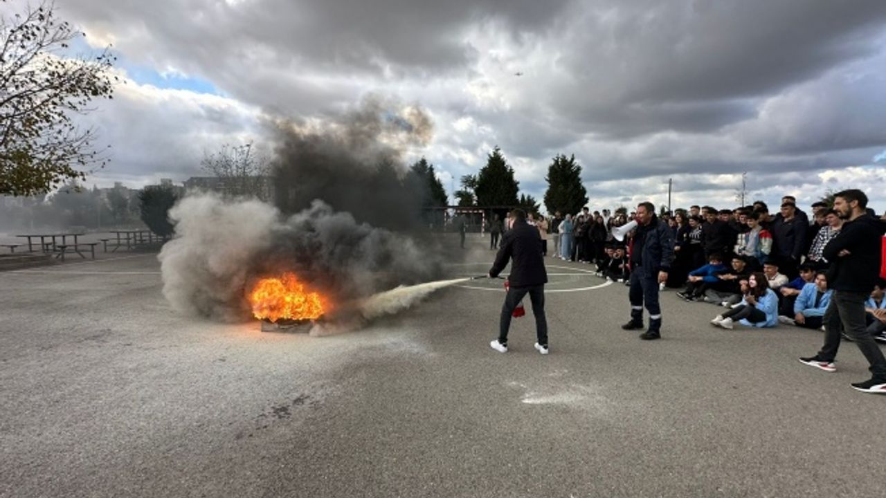 Tüm öğretmen ve öğrencilerin katılımıyla düzenlenen etkinlikte; deprem anı uygulamaları, tahliye tatbikatı ve yangın söndürme eğitimleri verildi.