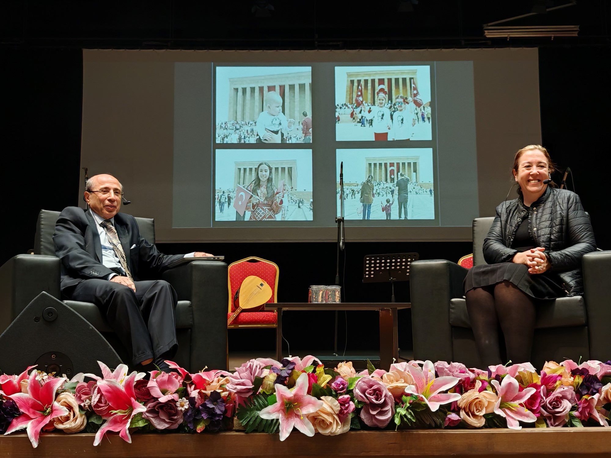 Açılış konuşmalarının ardından Prof. Dr. Damla Arısan moderatörlüğünde Prof. Dr. Turgut Göksoy’un katılımıyla gerçekleştirilen söyleşide, Atatürk’ün yaşamından kesitler aktarıldı. Prof. Dr. Göksoy, Atatürk’ün milletine adanmış bir lider olduğunu belirterek Türk gençliğinin her yönüyle onu örnek alması gerektiğini vurguladı.