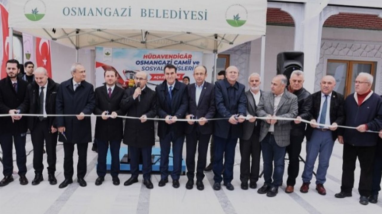 Hüdavendigar Osmangazi Camii ve Sosyal Tesisleri, Osmangazi İlçe Müftüsü Mehmet Uzun'un yaptığı duanın ardından protokolün kurdele kesimiyle ibadete açıldı.