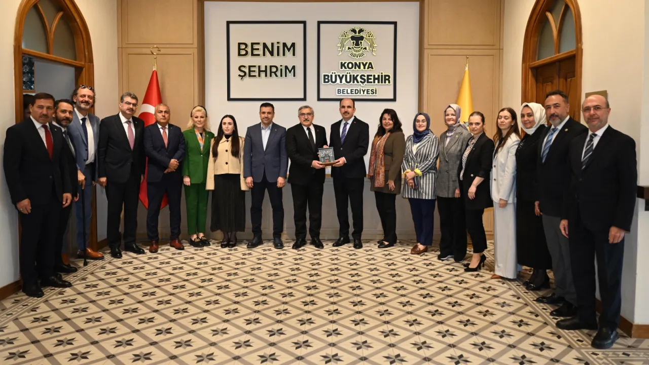 AK Parti Genel Başkan Yardımcısı, Kültür ve Sanat Politikaları Başkanı Hüseyin Yayman ise, “Asrın depreminde Hatay’ın yanında duran Konya Büyükşehir Belediye’mizi ziyaret ettik. Tarih boyunca medeniyetlerin buluşma noktası olmuş, hoşgörüsü ve kültürel zenginlikleriyle Türkiye’nin en özel şehirlerinden biri olan Konya’nın kültür ve sanat hayatını daha da geliştirmek için verimli bir sohbet gerçekleştirdik. Konya’nın manevi atmosferi, sanatla iç içe geçmiş yaşamı ve köklü tarihi bizlere ilham veriyor. Bu güzel şehirde kültür ve sanatın güçlenmesi adına yapılacak her çalışmanın büyük bir değer taşıdığına inanıyoruz. Nazik ev sahiplikleri ve ilgiyle ağırlamaları için değerli Başkanımıza teşekkür ediyoruz. Birlikte, Konya’yı kültür ve sanatın merkezi yapma yolunda kararlılıkla ilerliyoruz” diye konuştu.
