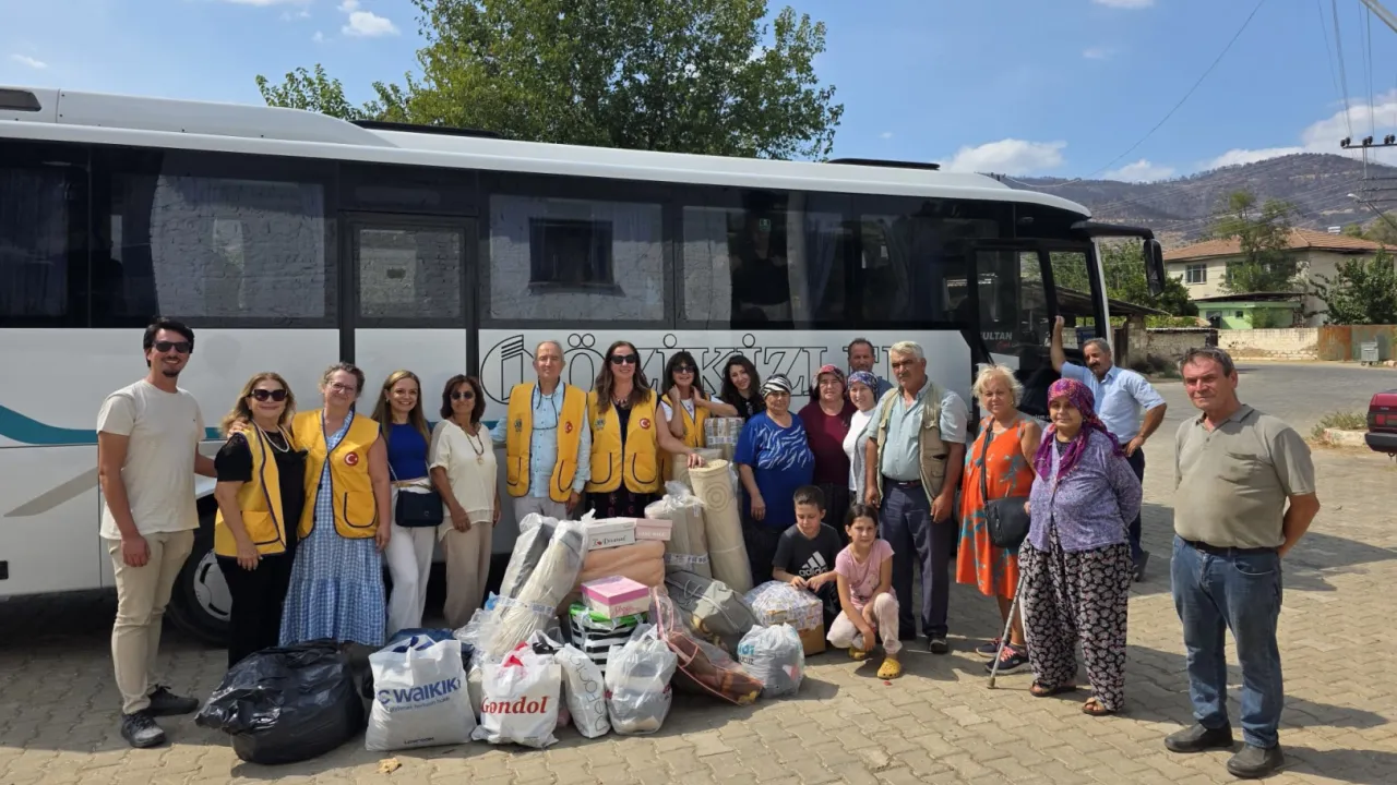 Artemis Lions Kulübü üyeleri, yangından etkilenen İzmir'in köylerini ziyaret etti. Köy muhtarları, su sıkıntısını ve okul binasının kullanılmasını talep ederken kulüp, köylülere gıda ve giysi yardımı yaptı; çocuklara moral verdi, ürünlerini satın aldı.İZMİR (İGFA) - Artemis Lions Kulübü'nün başkan ve üyeleri, yangından en çok etkilenen İzmir'in Ödemiş ilcesine bağlı Karadoğan, Ortaköy ve Tosunlar köylerine ziyaret gerçekleştirdi.