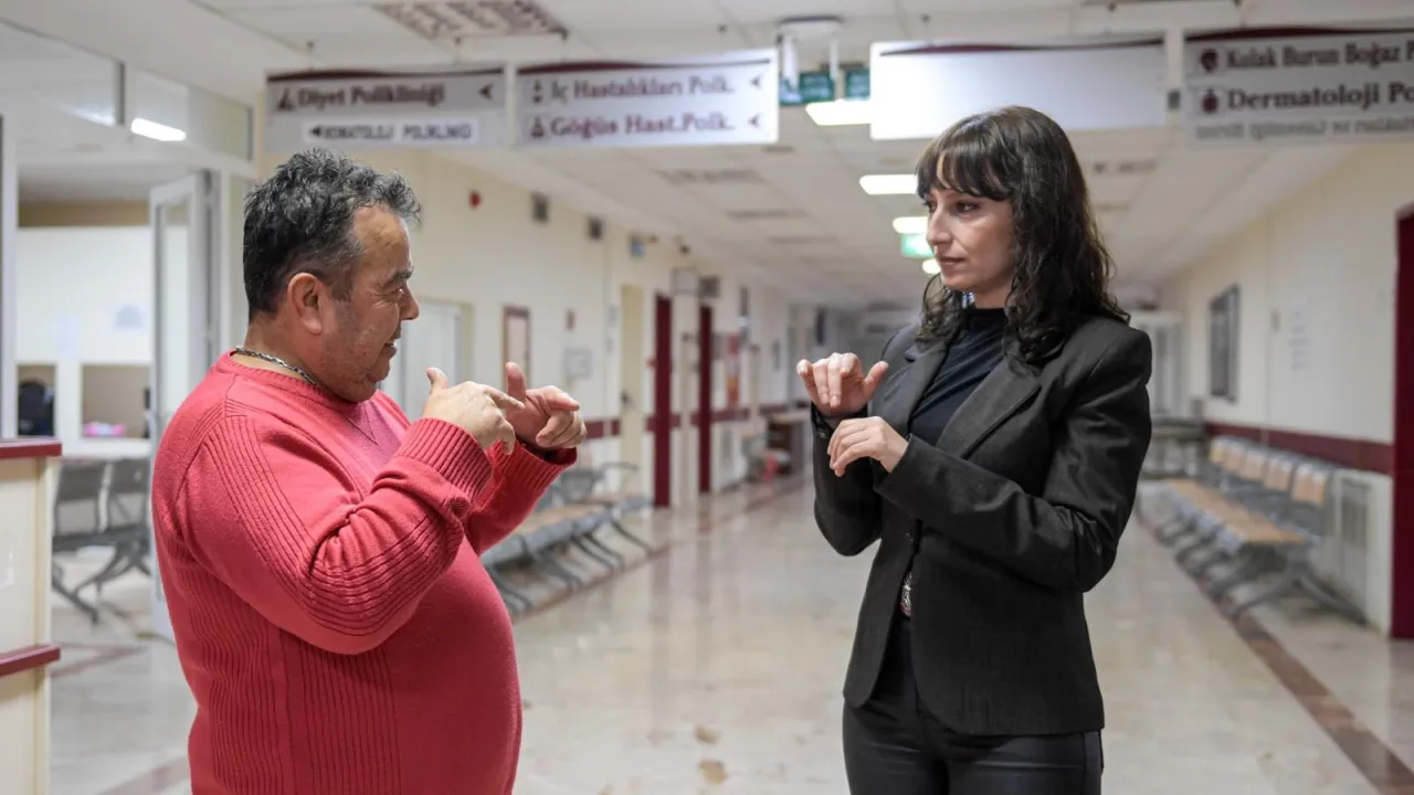 İZMİR (İGFA) - İzmir Büyükşehir Belediyesi tarafından geçen yıl kurulan Türk İşaret Dili Birimi Sessiz Destek Çözüm Merkezi, işitme engelli ve sağır yurttaşlar için sunduğu tercümanlık hizmetleriyle hayati bir kamu hizmeti yürütüyor. İzmir'de yaşayan sağır yurttaş Nuran Şerife Kültem'in yaşadığı olay, Türk İşaret Dili tercümanlığının yalnızca bir iletişim desteği değil, doğrudan yaşam kurtaran bir hizmet olduğunu bir kez daha gözler önüne serdi.