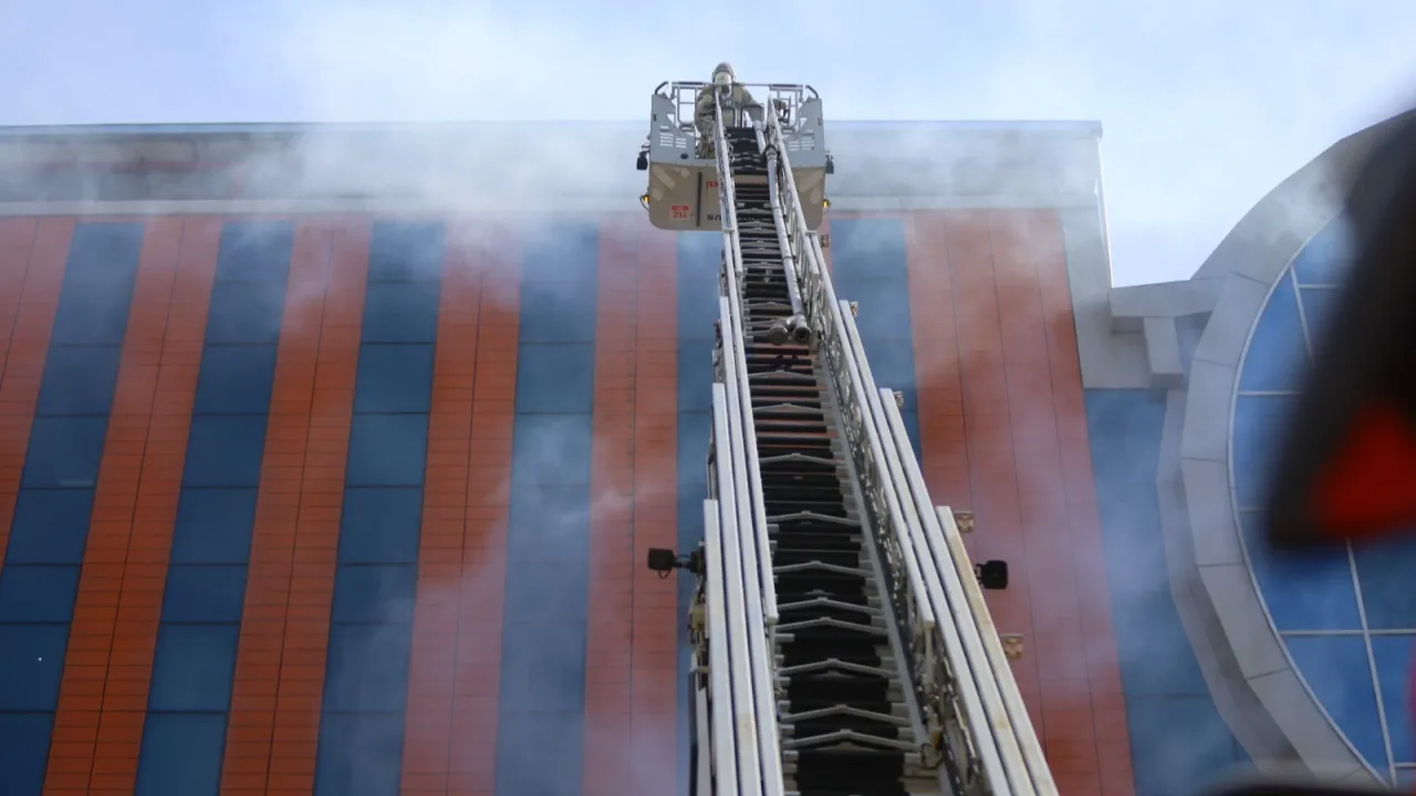 İtfaiye Haftası etkinlikleri kapsamında Karabağlar Belediyesi Afet İşleri Müdürlüğü ile İzmir Büyükşehir Belediyesi İtfaiye Yangın ve Acil Müdahale Şube Müdürlüğü işbirliğinde yangın tahliye ve kurtarma tatbikatı gerçekleştirildi.İZMİR (İGFA) - Karabağlar Belediyesi ana hizmet binası ve açık otopark alanında yapılan tatbikat, gerçeğini aratmadı. Senaryo gereği binada çıkan yangına hızla müdahale edilerek, çatı katında mahsur kalan personel güvenli şekilde tahliye edildi. Kurtarma çalışmaları başarıyla uygulanırken, tatbikatta Güvenlik ve Zabıta birimleri de aktif rol aldı.