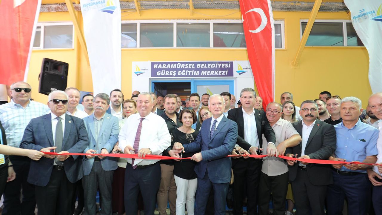 Karamürsel Belediyesi tarafından yapımı tamamlanan ve Türkiye’ye örnek olma niteliği taşıyan Güreş Eğitim Merkezi, geniş katılımlı bir törenle hizmete açıldı. Açılışa siyasetten spor camiasına, yerel yöneticilerden vatandaşlara kadar pek çok isim katılım sağladı.