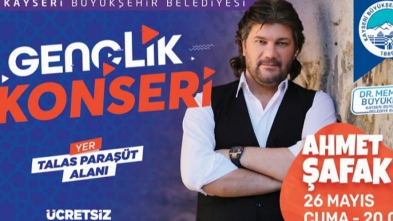 Bu kapsamda Talas Paraşüt Alanı’nda 26 Mayıs Cuma günü düzenlenecek Gençlik Konserinde sanatçı Ahmet Şafak sahne alacak. Sevilen parçalarını gençler için seslendirecek Şafak, Kayserililere unutulmaz bir akşam yaşatacak.