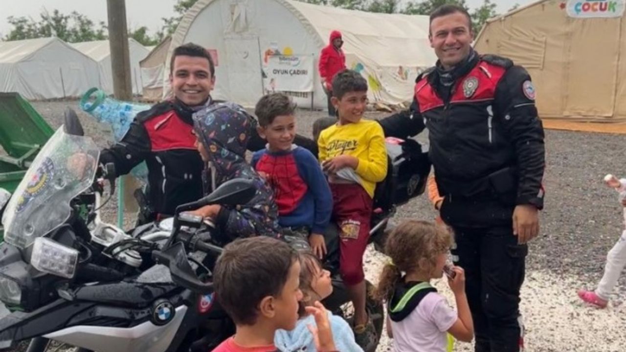 Kahramanmaraş’ta geçici görevde bulunan Edirne Keşan polisi çocukları sevindirdi.Erdoğan DEMİR / EDİRNE (İGFA) -  6 Şubat 2023 tarihinde meydana gelen depremin ardından Kahramanmaraş’ta geçici olarak görevli bulunan Keşan İlçe Emniyet Müdürlüğü Motosikletli Polis Timleri Personeli çocukları sevindirdi.