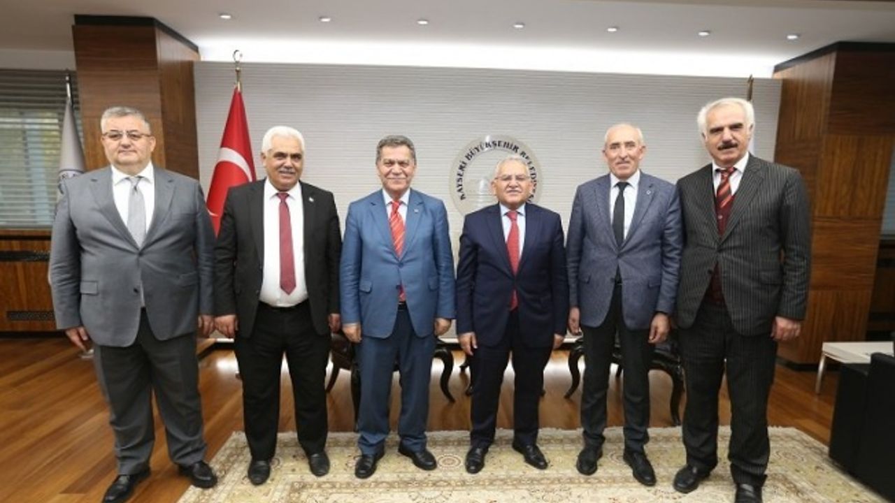 Kayseri Esnaf ve Sanatkârlar Odaları Birliği Başkanı Şeyhi Odakır, Kayseri Esnaf ve Sanatkârlar Kredi ve Kefalet Kooperatifi Yönetim Kurulu Başkanı Mustafa Alan, Otobüsçüler Odası Başkanı Hayrullah Şahin ile Berberler ve Kuaförler Odası Başkanı Rıfat Alparslan Büyükşehir Belediye Başkanı Dr. Memduh Büyükkılıç’ı ziyaret etti.