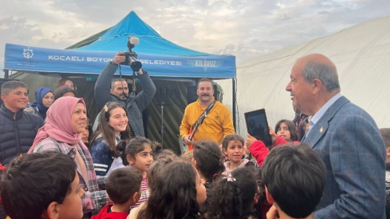 Kuzey Kıbrıs Türk Cumhuriyeti (KKTC) Cumhurbaşkanı Ersin Tatar, Kocaeli Büyükşehir’in Hatay Defne’de kurduğu çadır kenti ziyaret etti.HATAY (İGFA) - KKTC Cumhurbaşkanı Ersin Tatar, Kocaeli Büyükşehir Belediyesi’nin Hatay’ın Defne ilçesinde kurduğu çadır kente ziyarette bulundu.