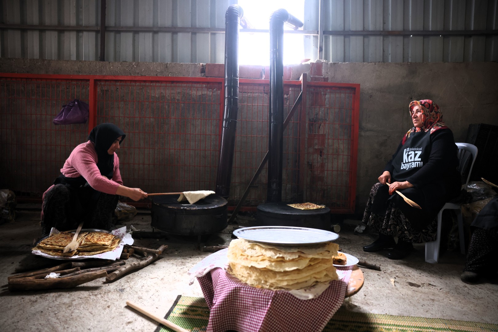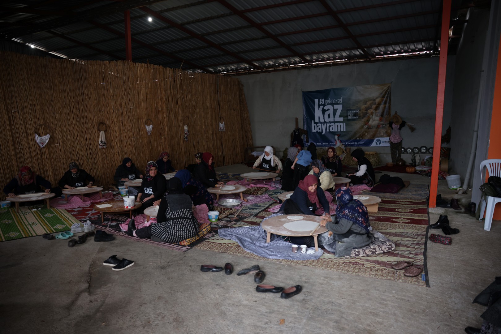 Kaz Bayramı ritüelleri arasında yer alan imece kültürünü gerçekleştiren köy kadınları, yufka ihtiyacı olan evlerin ihtiyacını karşılamak üzere bir araya gelerek, birlik ve beraberlik içerisinde yufkalarını açtı. Yardımlaşma kültürünün köklü değerlerinin yaşatılacağı ortak sofralarda yer alacak tirit ve kuru üzümlü, şekerli börek yapımında kullanılacak yufkalar el birliği ile bayram için hazırlandı. Bayram sofralarında bunun yanında ayrıca bölgenin geleneksel lezzetlerinden taşlık dolması, ciğer kızartması, ciğerli börek, tıkıl ve peynirli lokum yer alacak.