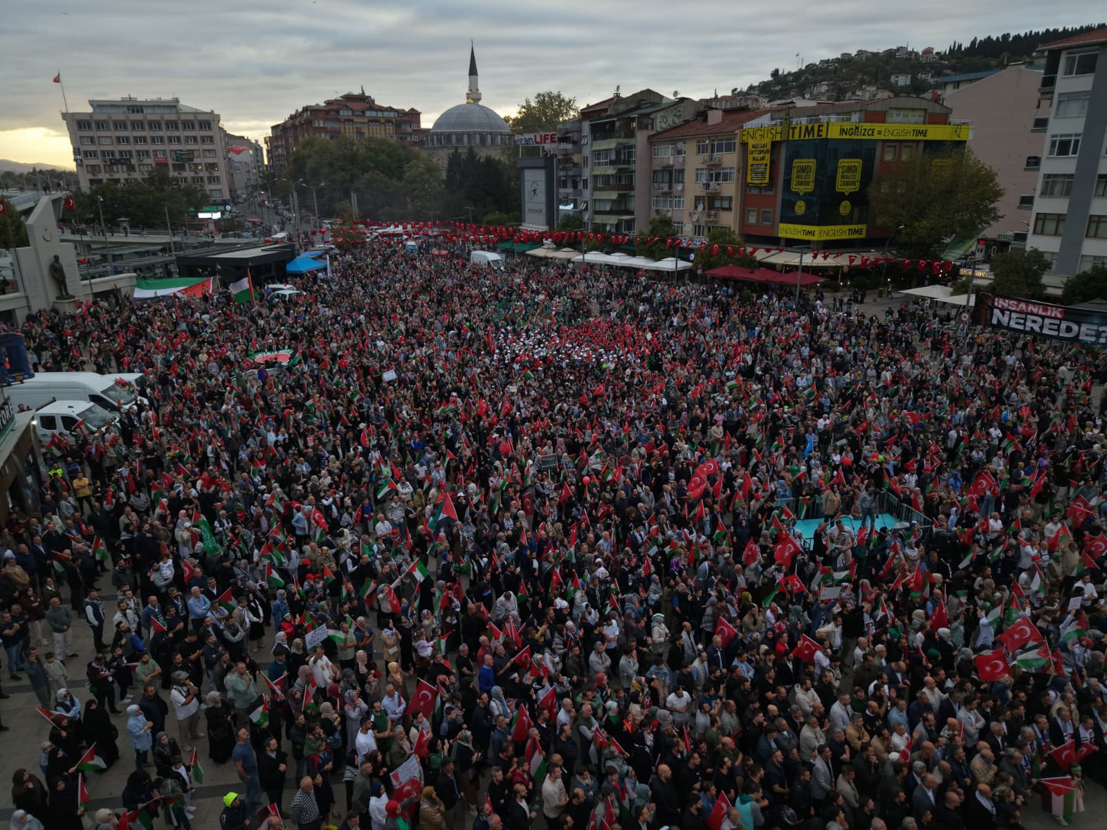 Kocaeli Filistin Hareketi de bugün düzenlediği "Filistin için Sumud" Mitingi ile Filistin halkına desteğini gösterdi. Mitinge Kocaeli Valisi İlhami Aktaş, Kocaeli Büyükşehir Belediye Başkanı Doç.Dr.Tahir Büyükakın, AK Parti MKYK Üyesi Davut Coşkun Şiviloğlu, AK Parti Kocaeli Milletvekilleri Cemil Yaman, Veysel Tipioğlu, Ak Parti Kocaeli İl Başkanı Şahin Talus, CHP Kocaeli İl Başkanı Bülent Sarı, KOÜ Rektörü Prof. Dr. Nuh Zafer Cantürk, siyasi parti il başkanları ve STK temsilcileri katıldı.
