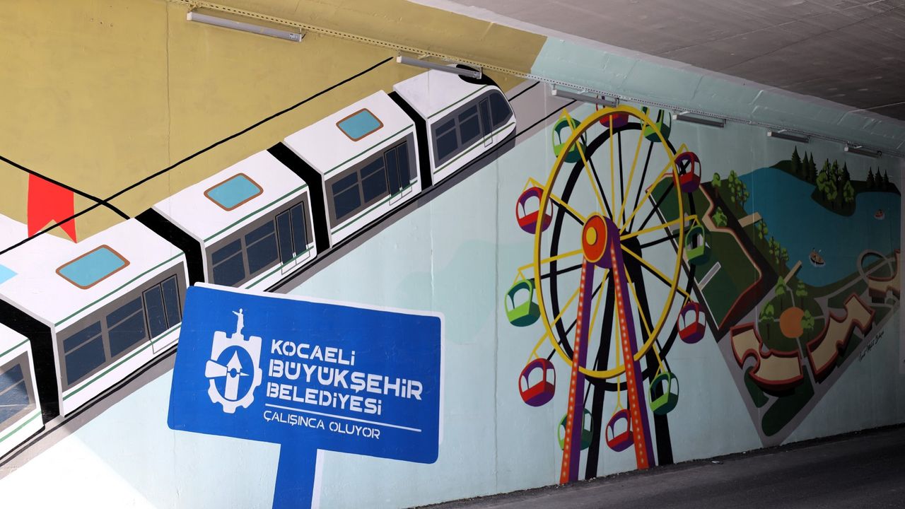 Çalışmalarda Kocaeli’nin tarihi, kültürel ve doğal güzellikleri ön plana çıkıyor. “Kartepe Teleferiği”, “Kuzuyayla”, “Mavi Bayraklı Plajlar”, “Valide Sultan Köprüsü”, “Kasr-ı Hümayun” gibi simgeler grafitti sanatçılarının fırçalarıyla duvarlara taşındı. “Mutlu Şehir Kocaeli” yazısı, emekçi çiftçilerin figürleri ve tramvay görselleri ise çalışmalara ayrı bir anlam kattı. Büyükşehir Belediyesi, şehrin değerlerini sanatla buluşturarak hem kent estetiğini güçlendiriyor hem de şehir içi ulaşımda vatandaşlara keyifli bir görsel deneyim sunuyor.