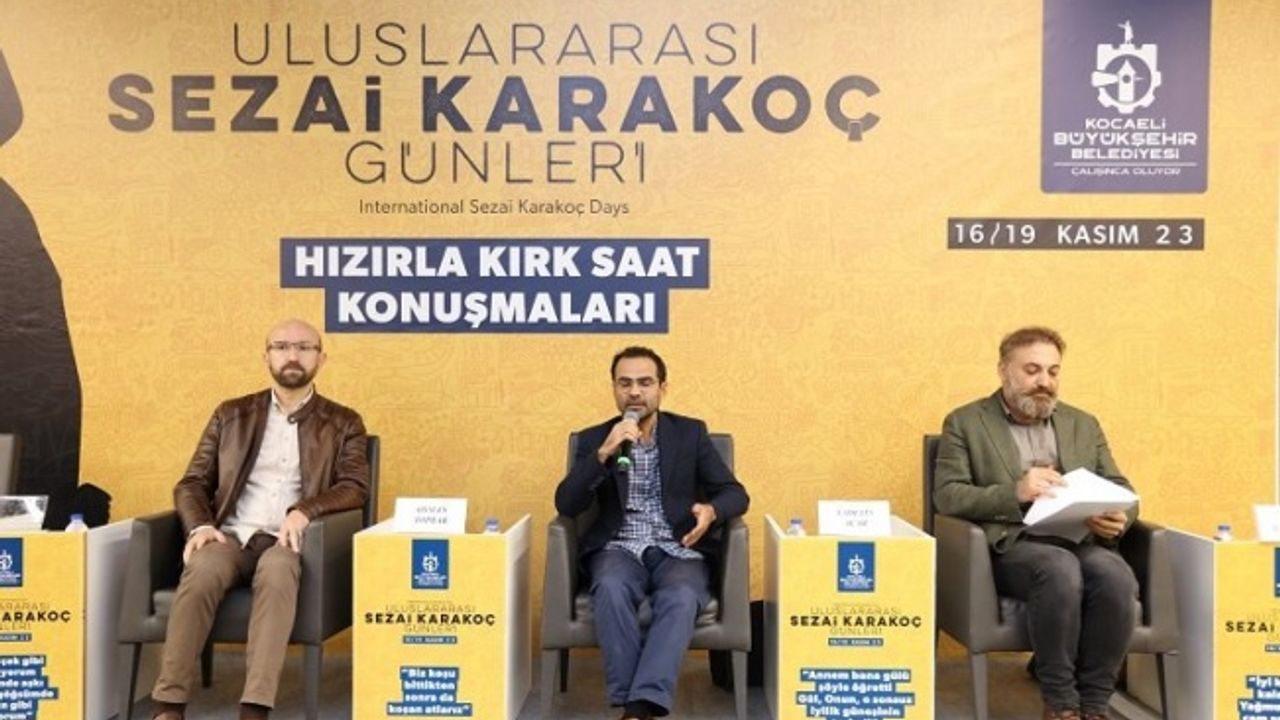 Üstadın şiirleri Uluslararası Sezai Karakoç Günleri kapsamında “Gün Onun O, Sonsuz İyilik Güneşi” adlı oturumda yazarlar tarafından yorumlandıKOCAELİ (İGFA) - Kocaeli Büyükşehir Belediyesi tarafından 16-19 Kasım tarihleri arasında gerçekleştirilen Uluslararası Sezai Karakoç Günleri, Kocaeli Kongre Merkezi'nde devam ediyor. “Gün Onun O, Sonsuz İyilik Güneşi” adlı oturumda yazar ve şairler Hüseyin Atlansoy, Yusuf Genç ve Ömer Erdem Karamürsel Alp Salonu'nda katılımcılarla bir araya geldi. Oturumda üstadın Hızırla Kırk Saat adlı eserinden bölümler okunarak yorumlandı.