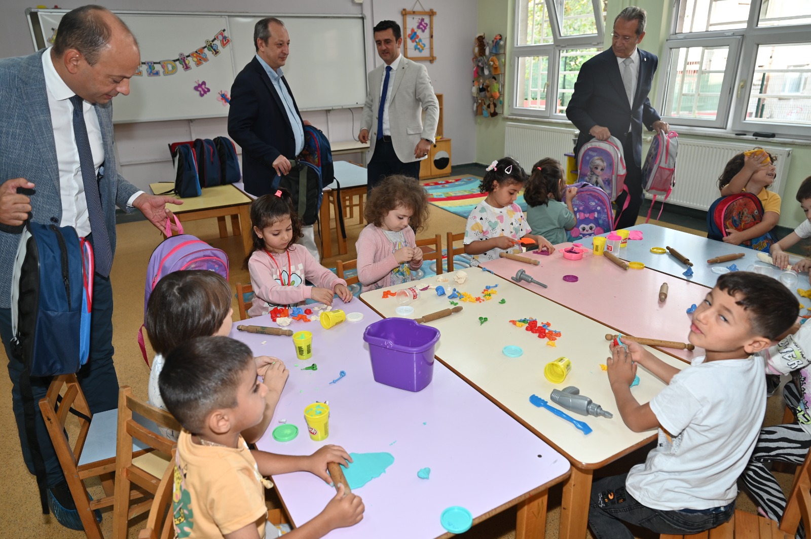 Kocaeli Sanayi Odası Dumlupınar Ortaokulu’nda bu yıl da 550 ortaokul ve 60 anaokulu olmak üzere toplamda 610 öğrenciye okul çantası ve kırtasiye malzemeleri dağıtıldı. Kocaeli Sanayi Odası Meclis Başkanı Hasan Tahsin Tuğrul, KSO Genel Sekreteri Memet Barış Turabi, Okul Müdürü Hamit Şişman ve müdür yardımcıları ile öğretmenlerin katılımıyla gerçekleştirilen programda sınıflar gezilerek öğrencilerle buluşuldu, onlara hediyeleri sunuldu.