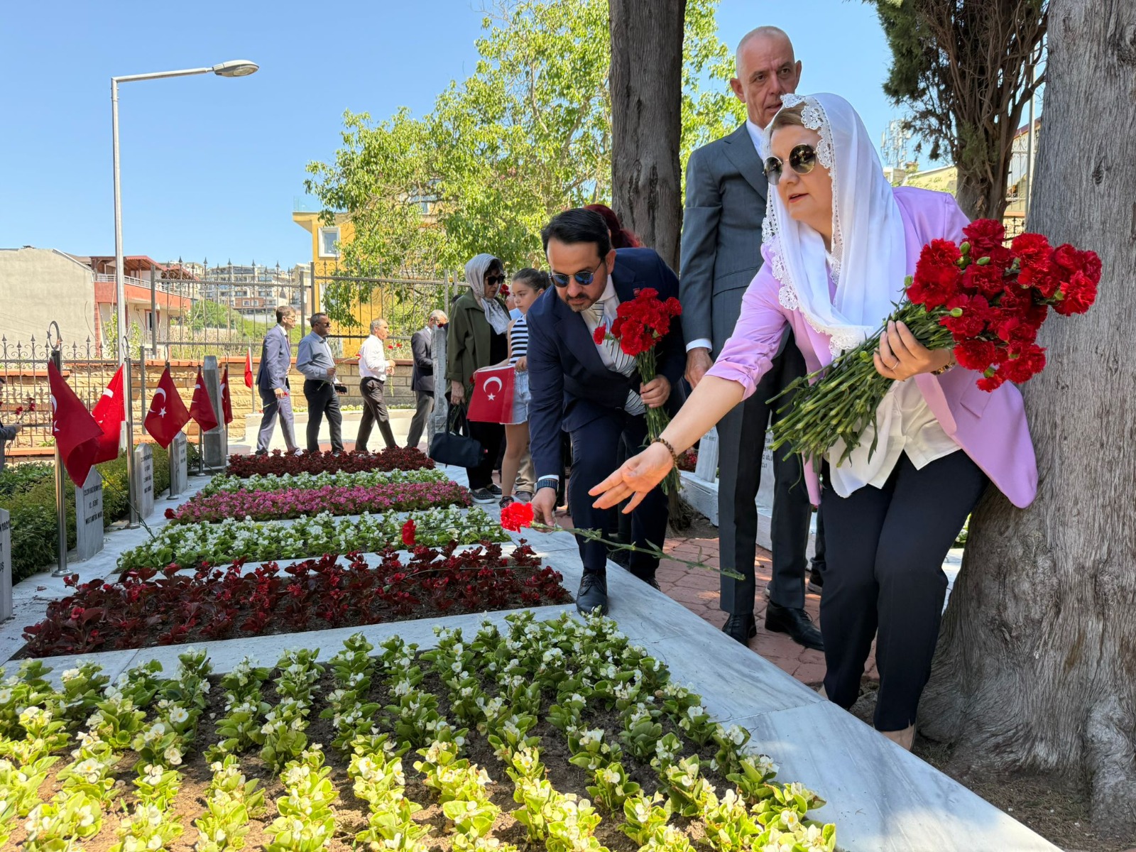 ŞEHİTLİKLERE KARANFİL BIRAKILDI