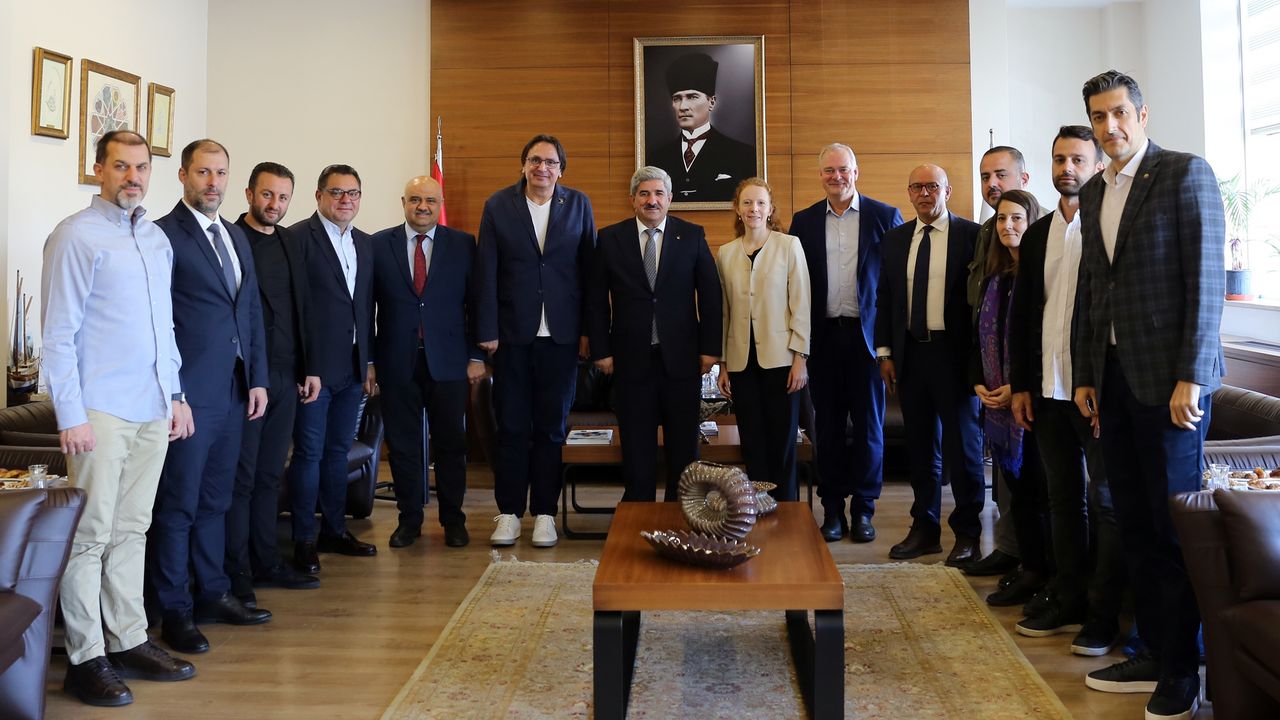 Lastik-İş Sendikası Genel Başkanı Alaaddin Sarı, sendikanın uluslararası üst örgütü IndustriALL Küresel Sendika’nın Genel Sekreter Yardımcısı Kemal Özkan, Otomotiv Direktörü Georg Leutert, Proje Koordinatörü Zeynep Ekin Aklar, Almanya Sektörel Diyalog Proje Müdürü Ann-Kathrin Schewe ve Lastik-İş Sendikası Uluslararası İlişkiler Uzmanı Cemal Hoşver, Kocaeli Ticaret Odası’nı ziyaret etti.